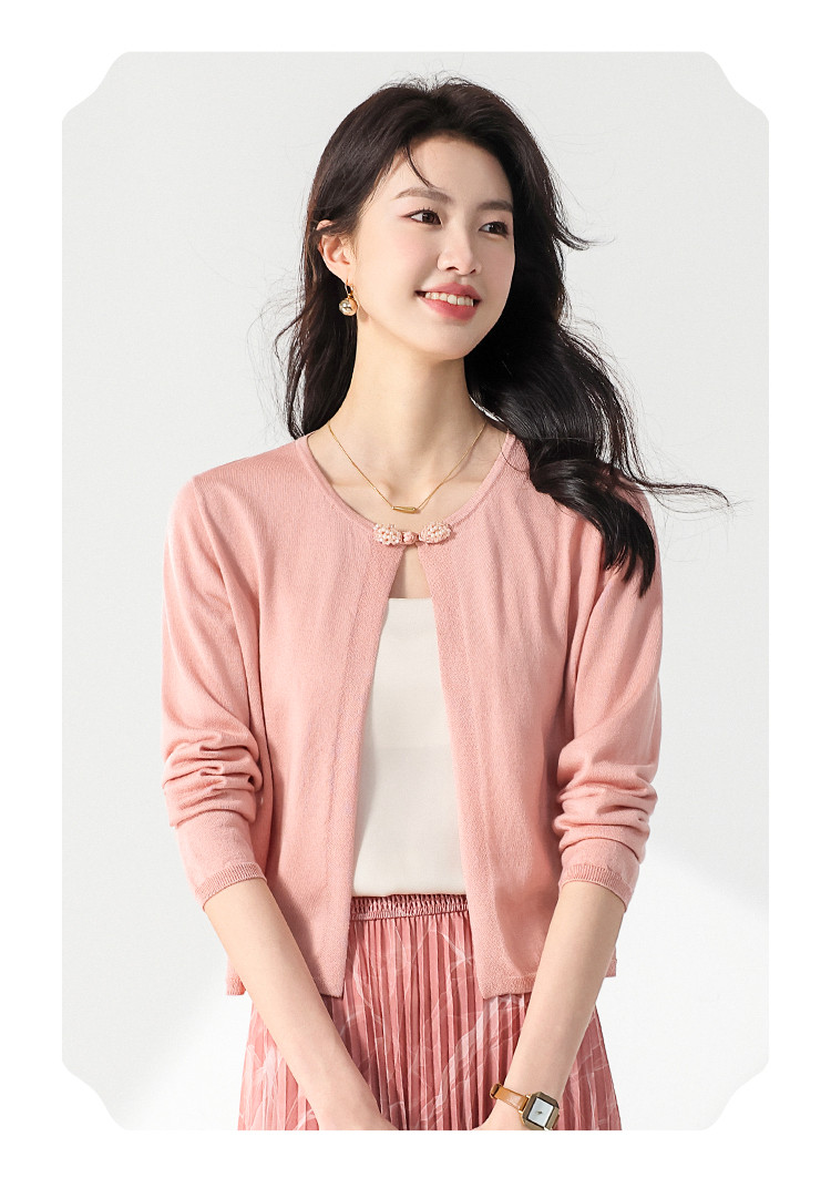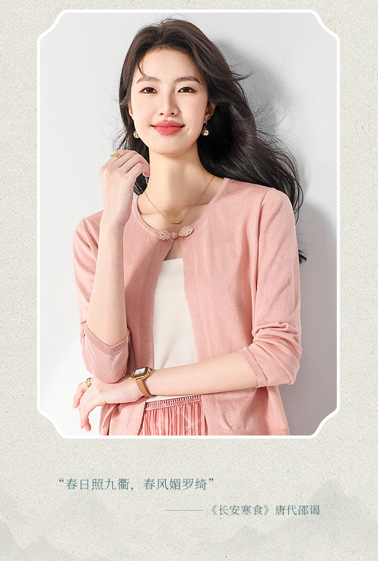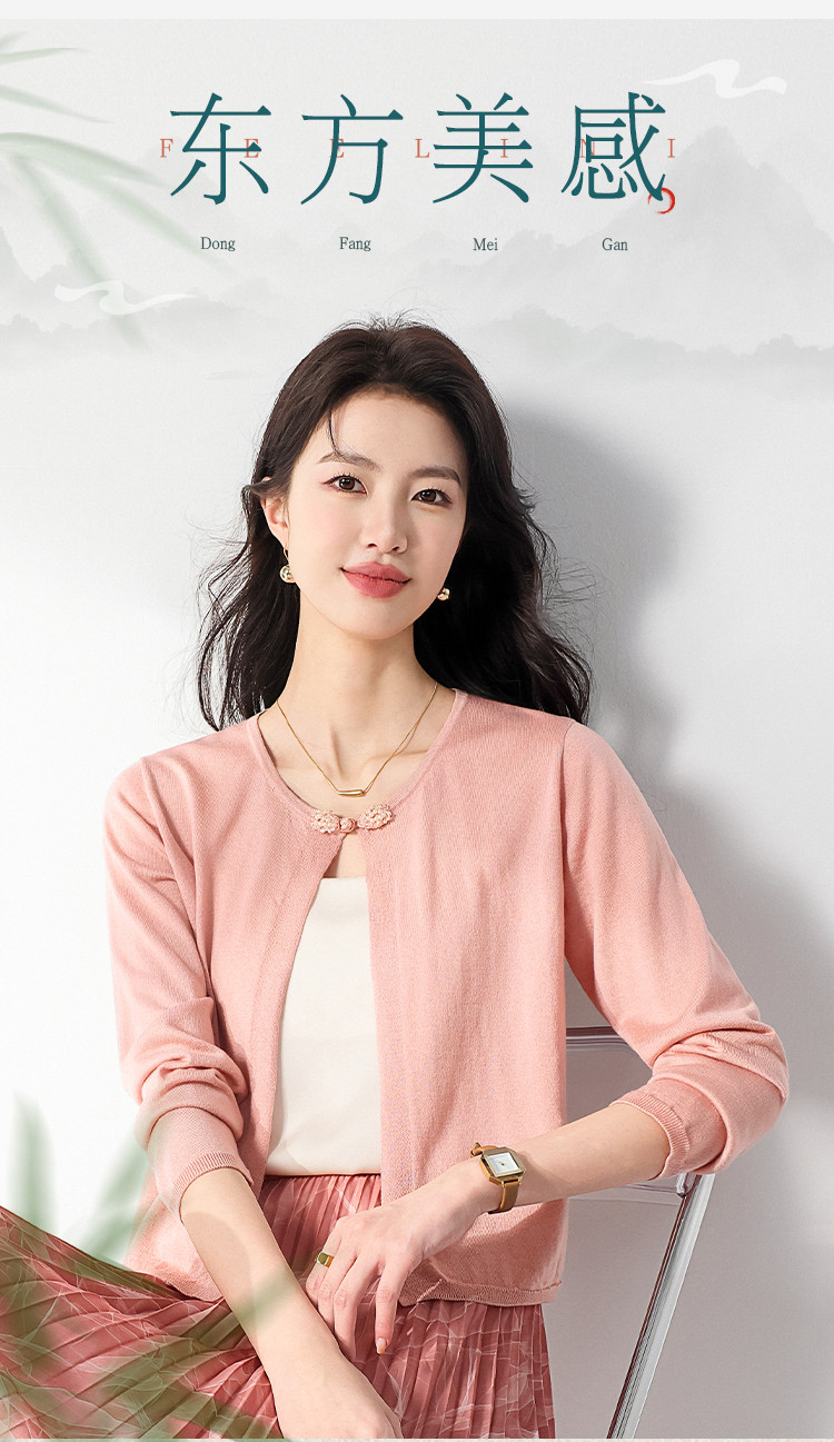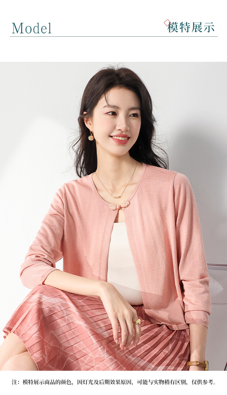 商品名称:【国风】新中式纯色圆领含桑蚕丝长袖针织开衫披肩夏款外套空调衫 525715