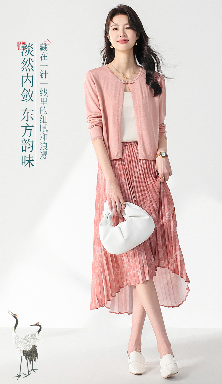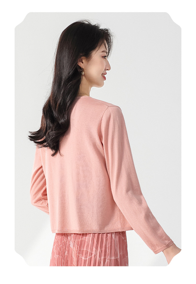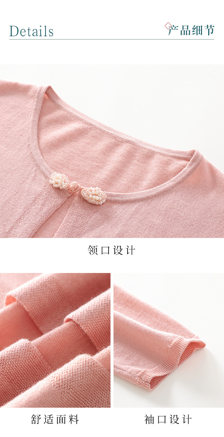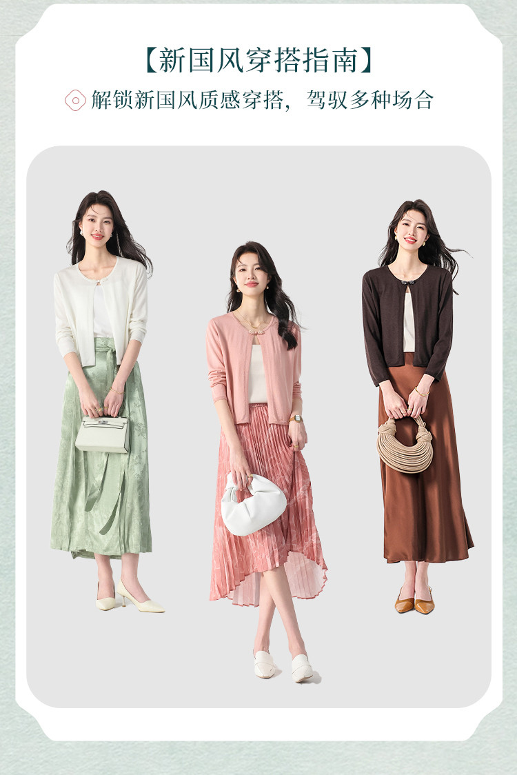 商品名称:【国风】新中式纯色圆领含桑蚕丝长袖针织开衫披肩夏款外套空调衫 525715