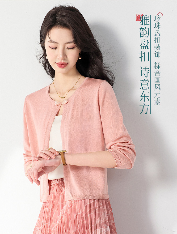 【国风】新中式纯色圆领含桑蚕丝长袖针织开衫披肩夏款外套空调衫 525715