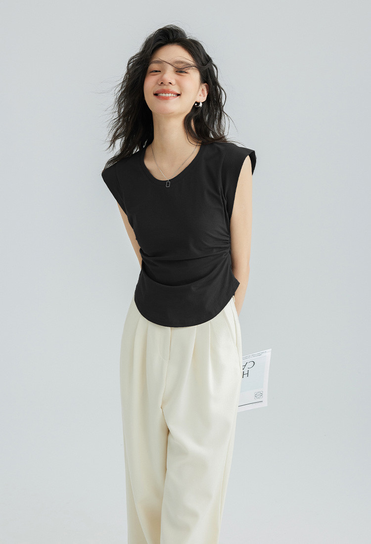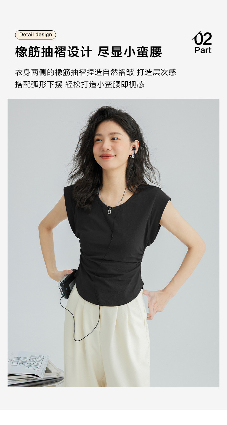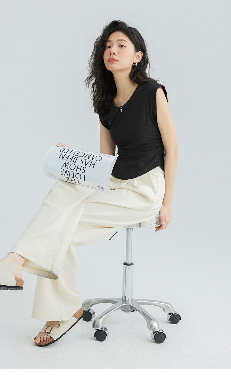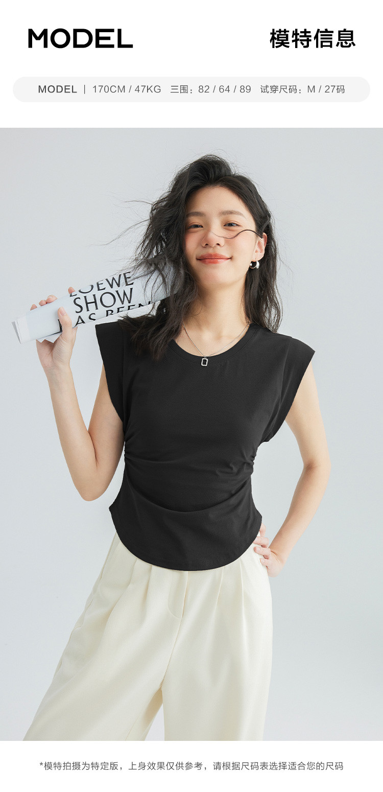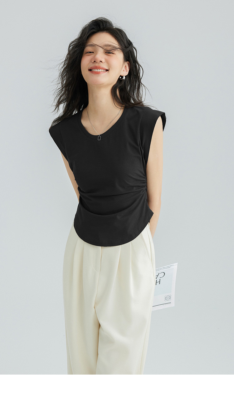 【洋气咖U领无袖T】夏款显腰身腰基础舒适微辣修身T恤 114562
