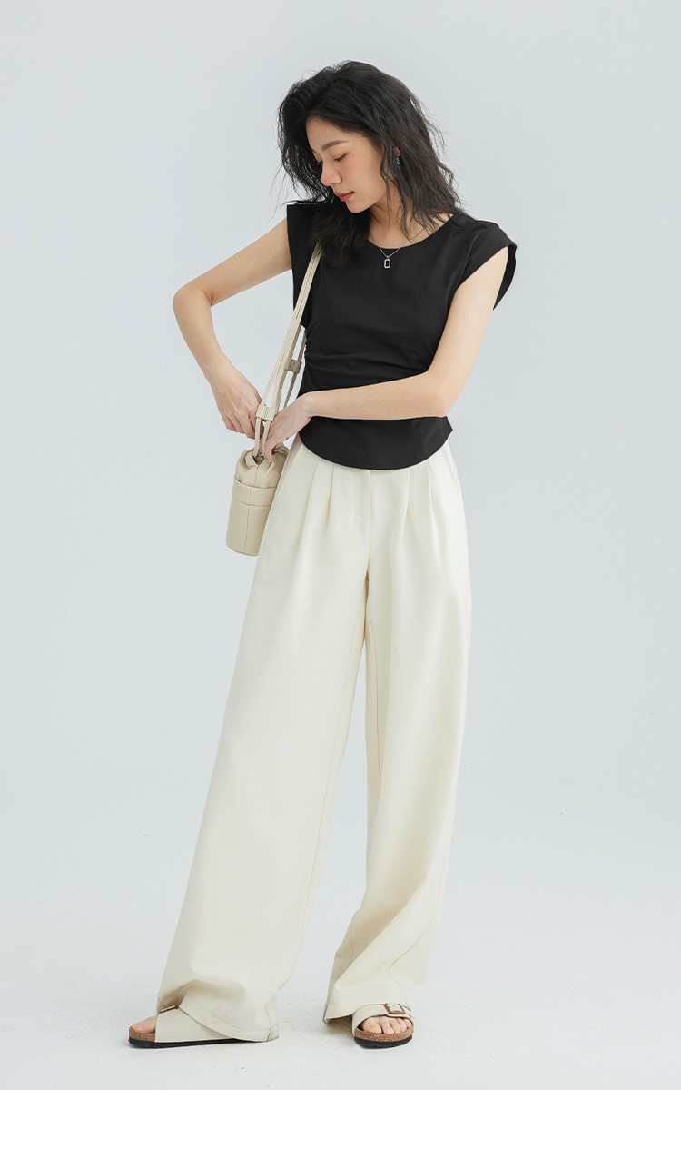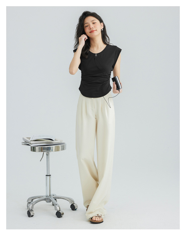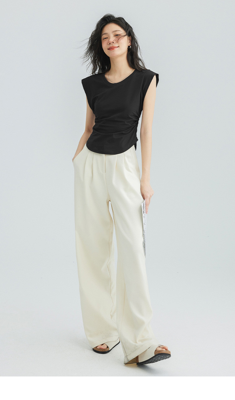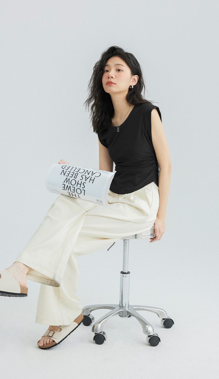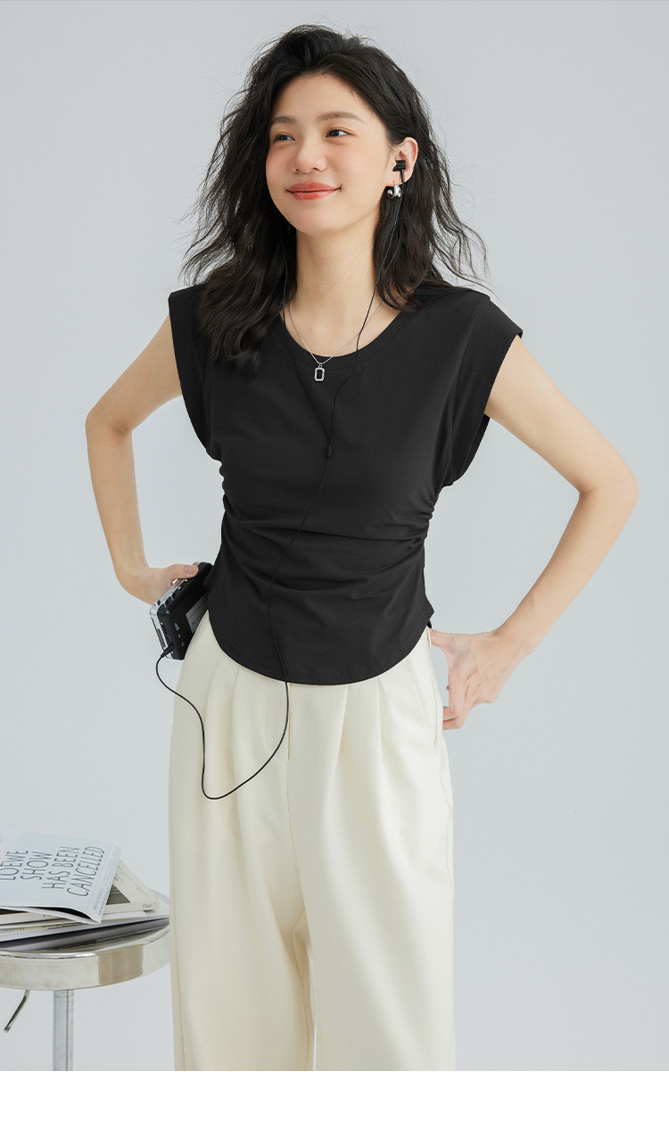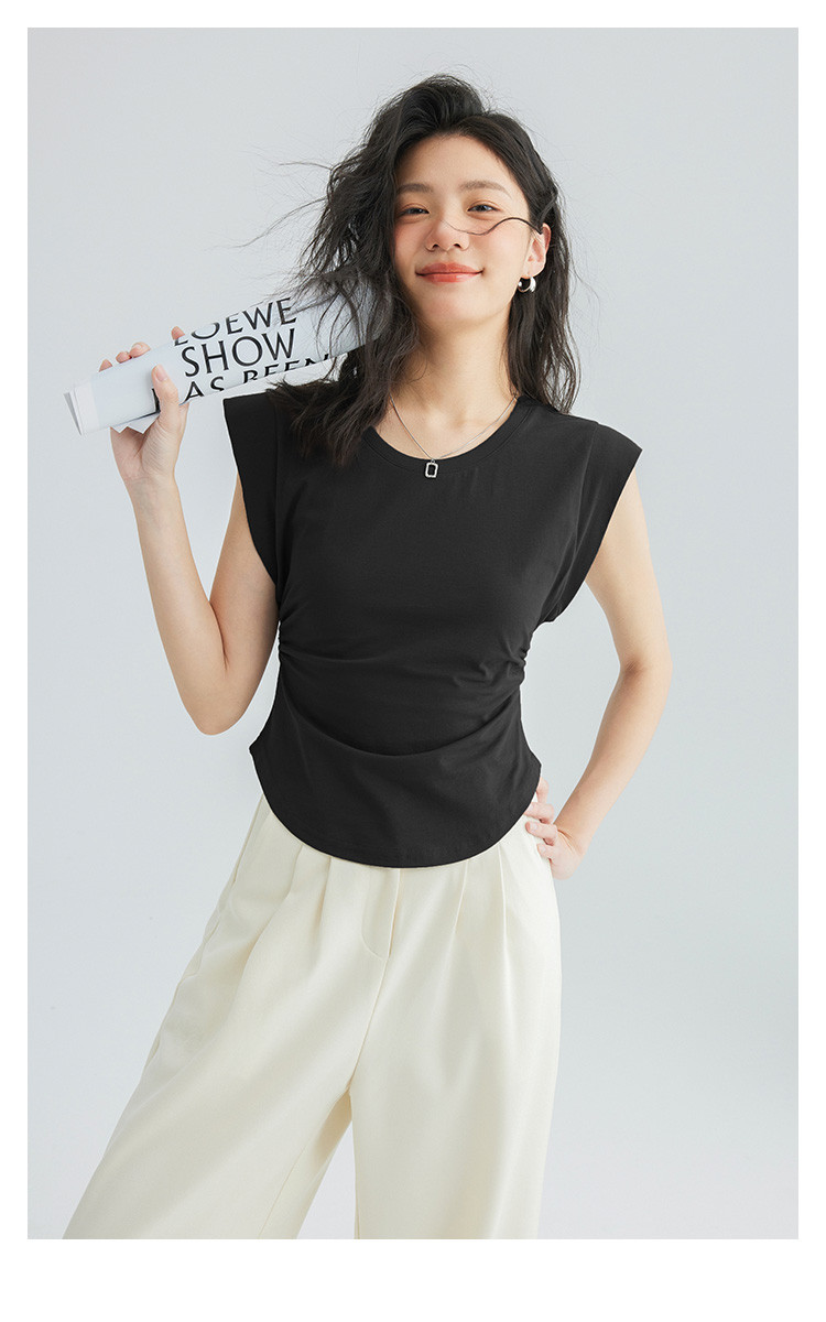 【洋气咖U领无袖T】夏款显腰身腰基础舒适微辣修身T恤 114562