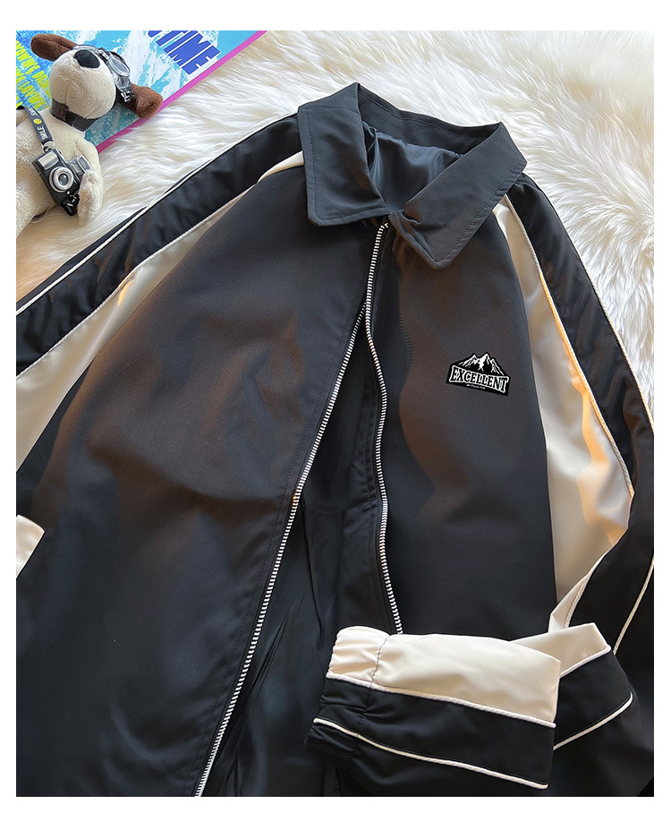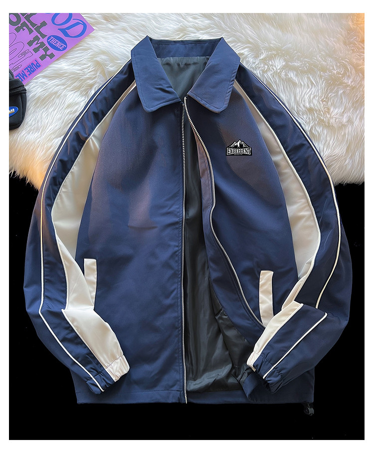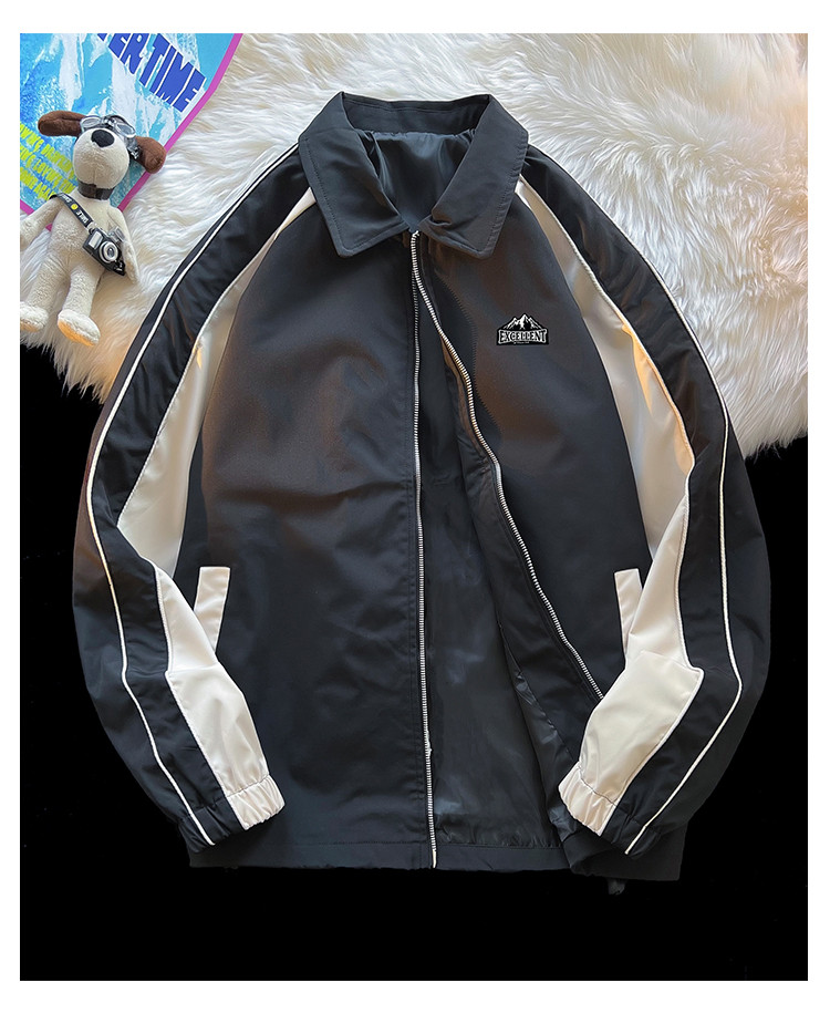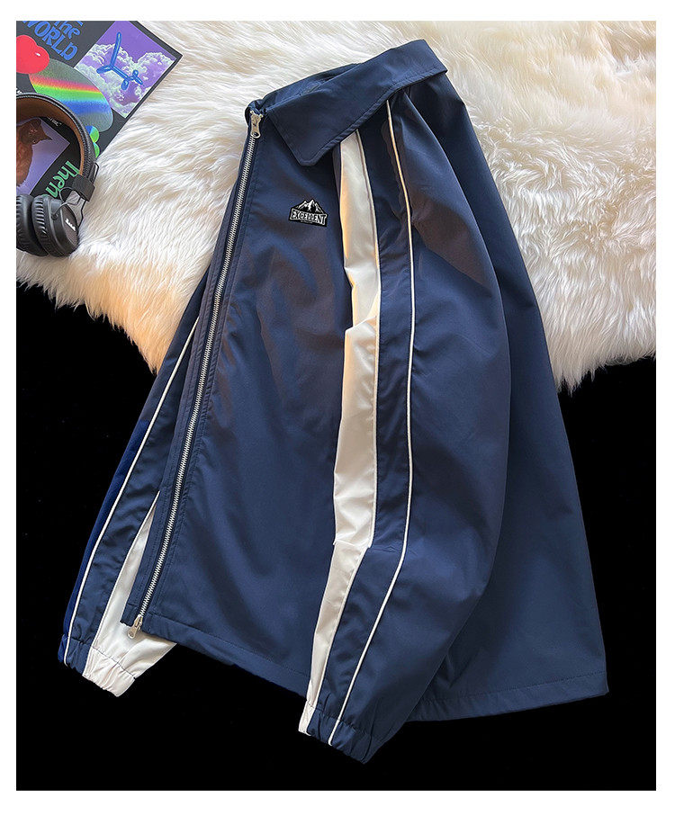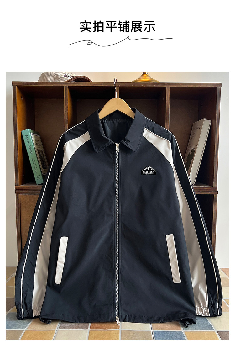 商品名称:美式高街工装外套男春季翻领双拉链休闲棒球服潮牌飞行员夹克衫 011347