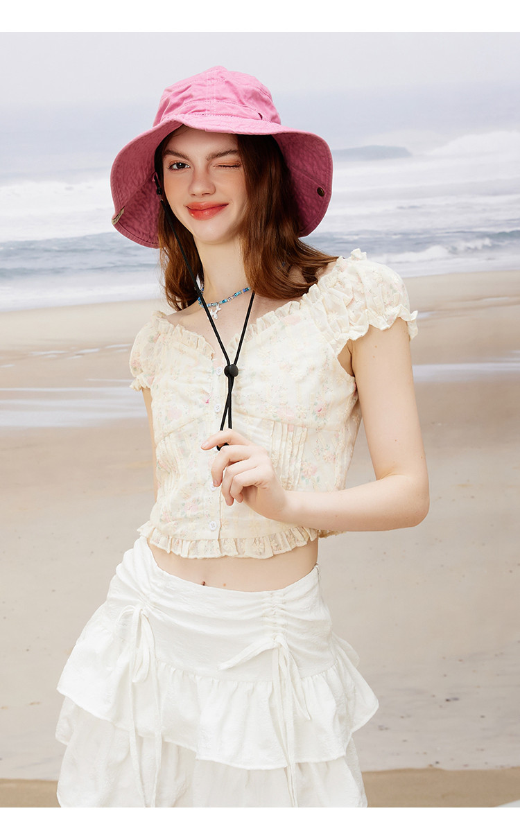 美式少女感刺绣小碎花收腰短款女式衬衫夏季小众气质上衣 791069
