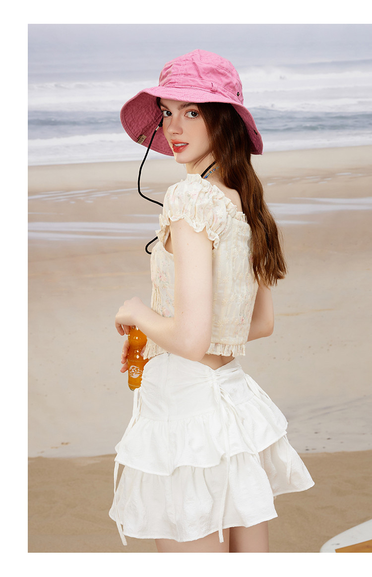 商品名称:美式少女感刺绣小碎花收腰短款女式衬衫夏季小众气质上衣 791069
