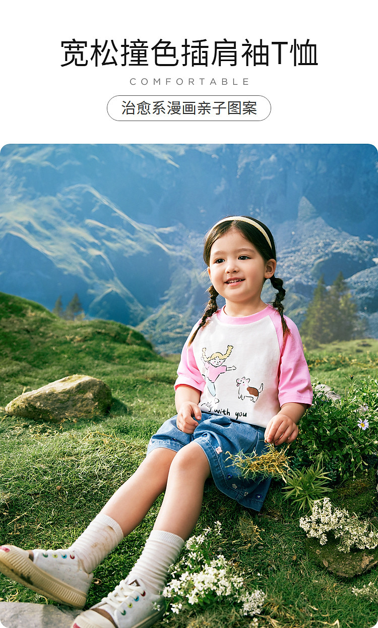 亲子撞色纯棉儿童T恤童装男童女童短袖夏季上衣轻薄 149701