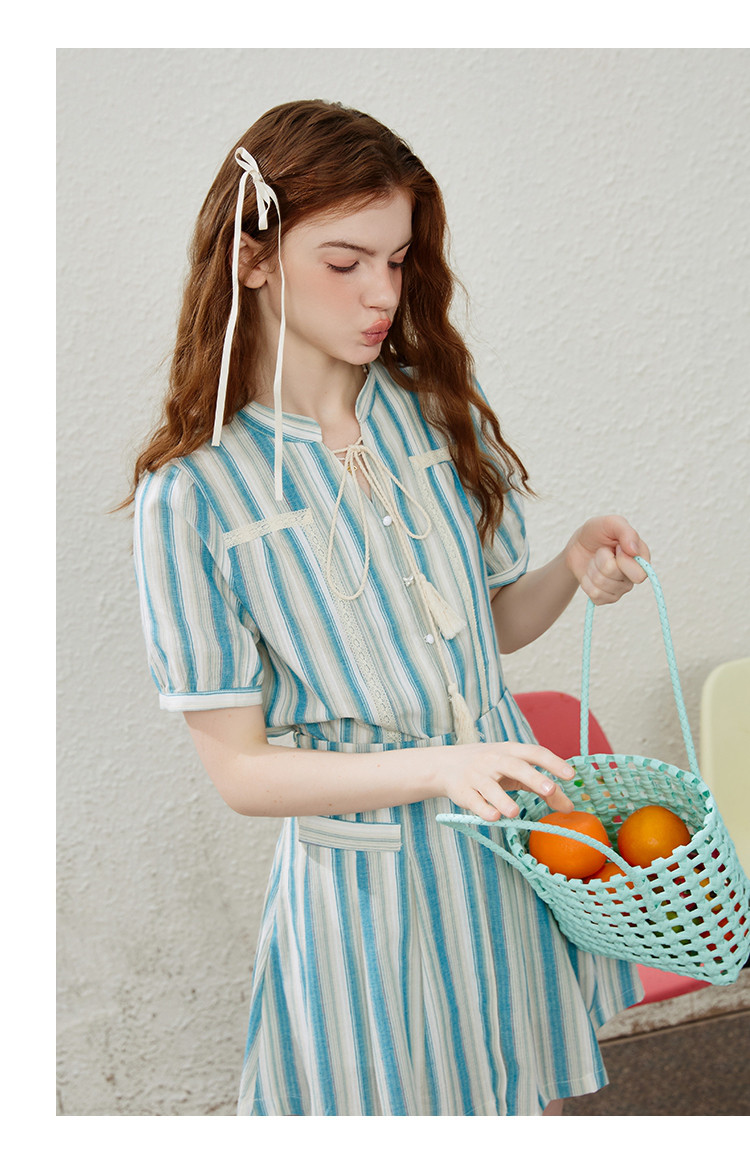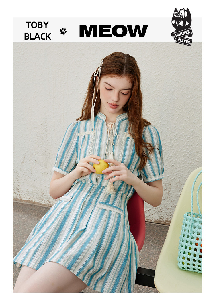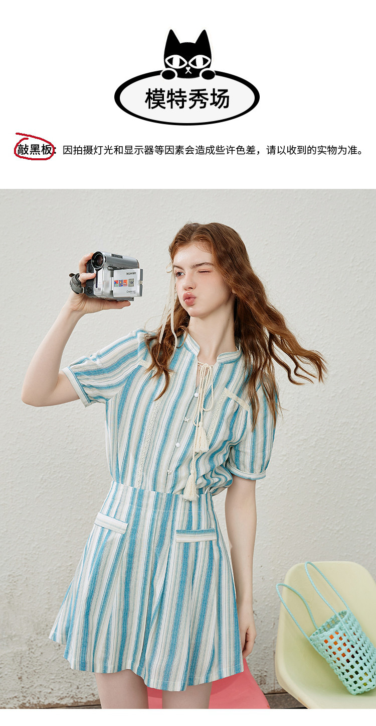 商品名称:法式甜辣温柔条纹短袖高腰显瘦气质减龄半裙夏季女式套装 684573