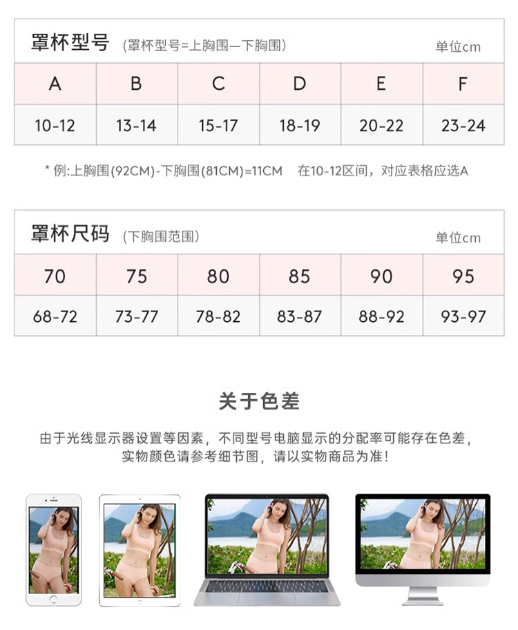 | 尺码 | 下胸围(cm) | 上胸围(cm) |