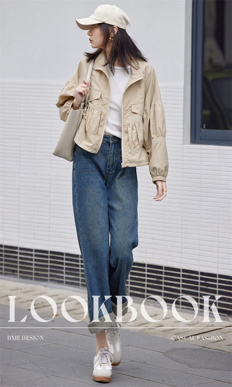 商品名称:【立领短外套】秋装上衣抽绳装饰风衣外套女短款 898690