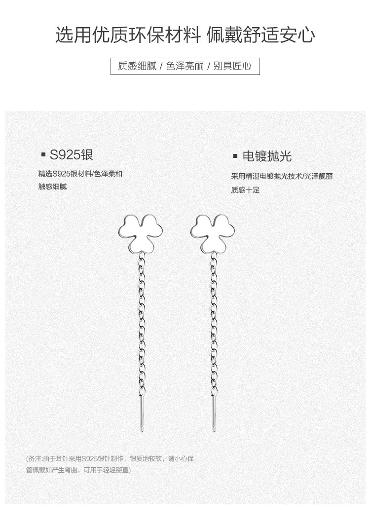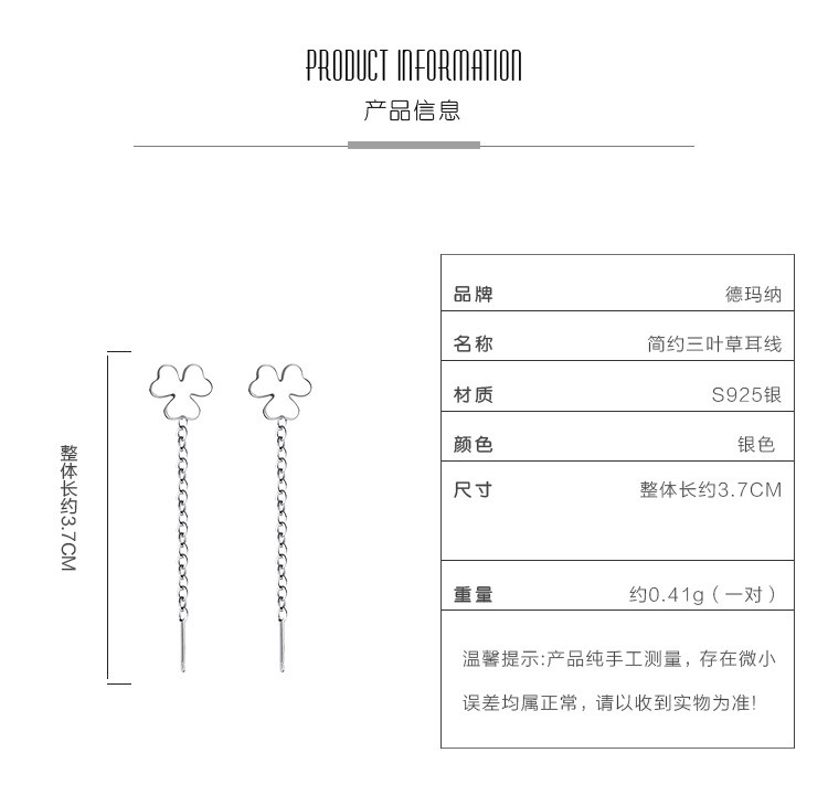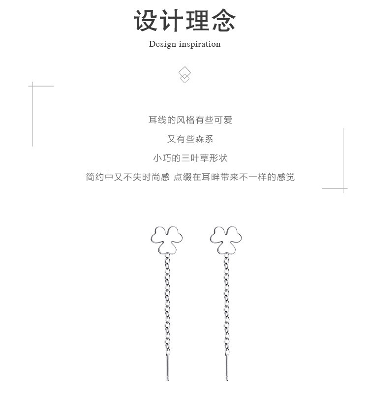 商品名称:【小清新气质】s925银小巧三叶草耳线气质流苏耳环耳饰 279041