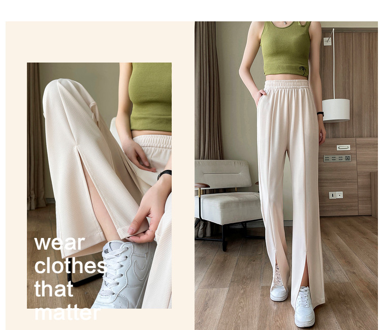 商品名称:【开衩休闲裤】夏季松紧腰裤子女微弹女裤透气休闲裤 688513