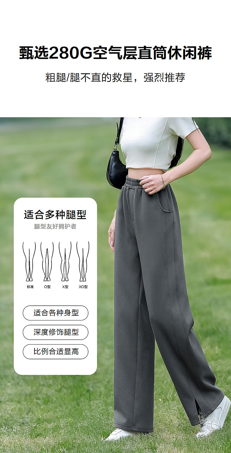 商品名称:【甄选280G空气层】春秋新松紧腰长裤女裤直筒分割线休闲裤 712001
