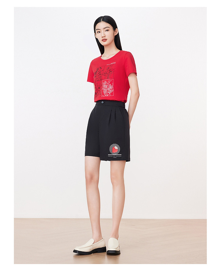 商场同款JZ玖姿草莓印花休闲短裤女夏季JWCX11512 748876