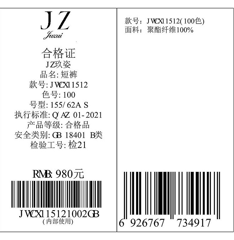 商品名称:商场同款JZ玖姿草莓印花休闲短裤女夏季JWCX11512 748876
