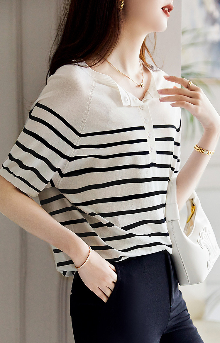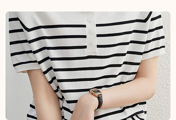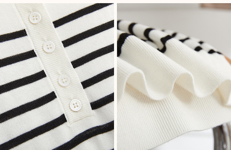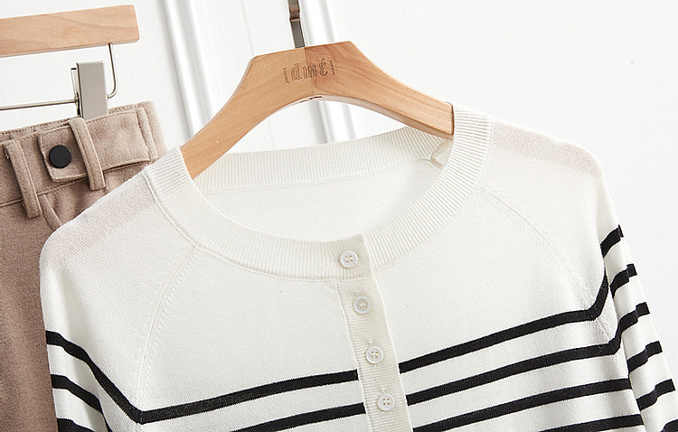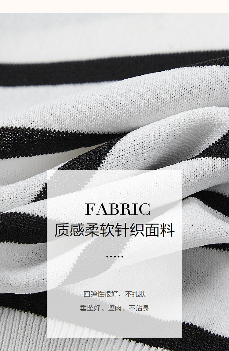 商品名称:【日系文艺通勤】春秋设计感圆领撞色条纹线衫藏肉显瘦针织衫 936641