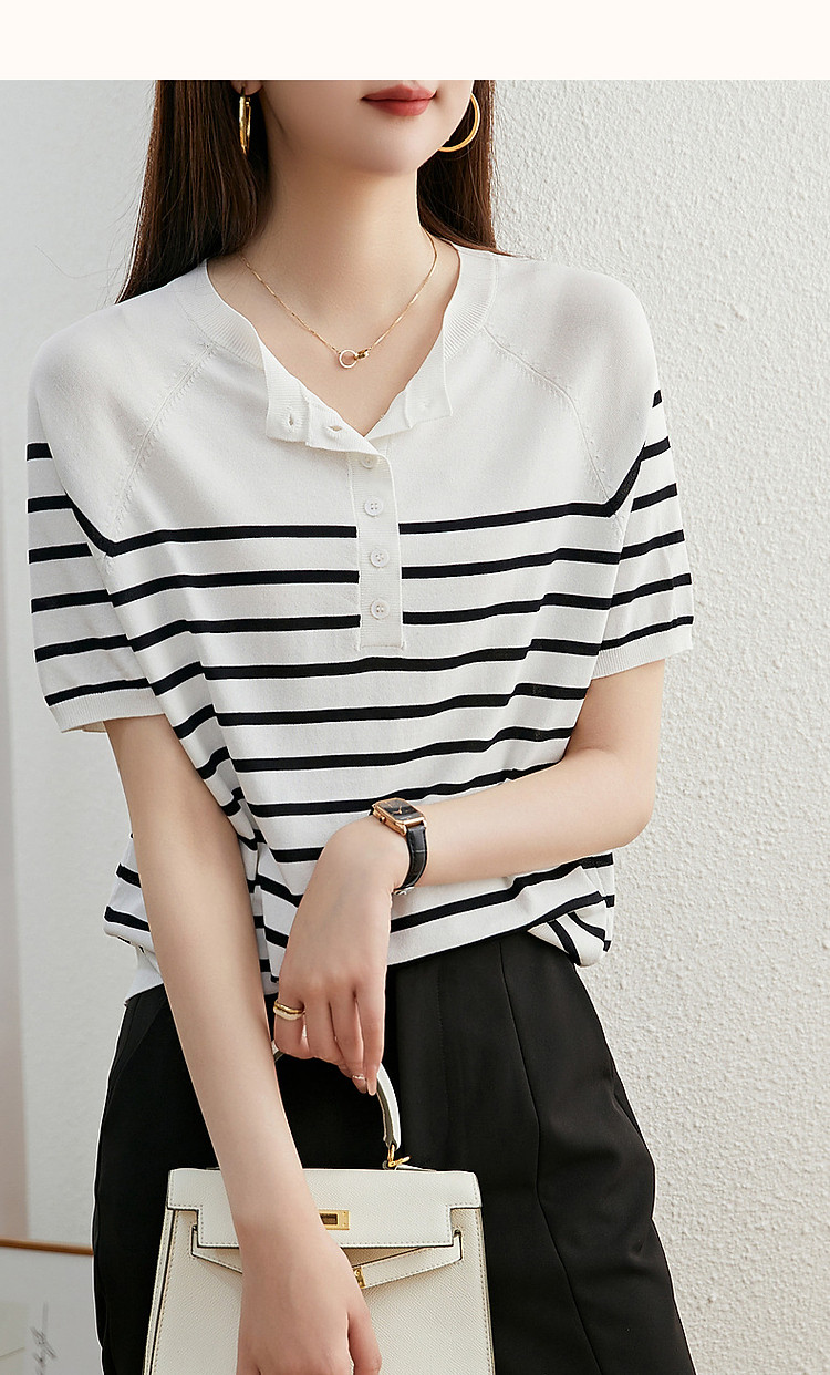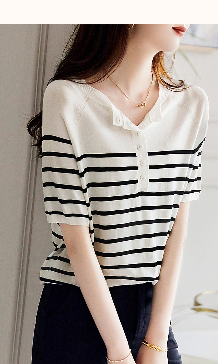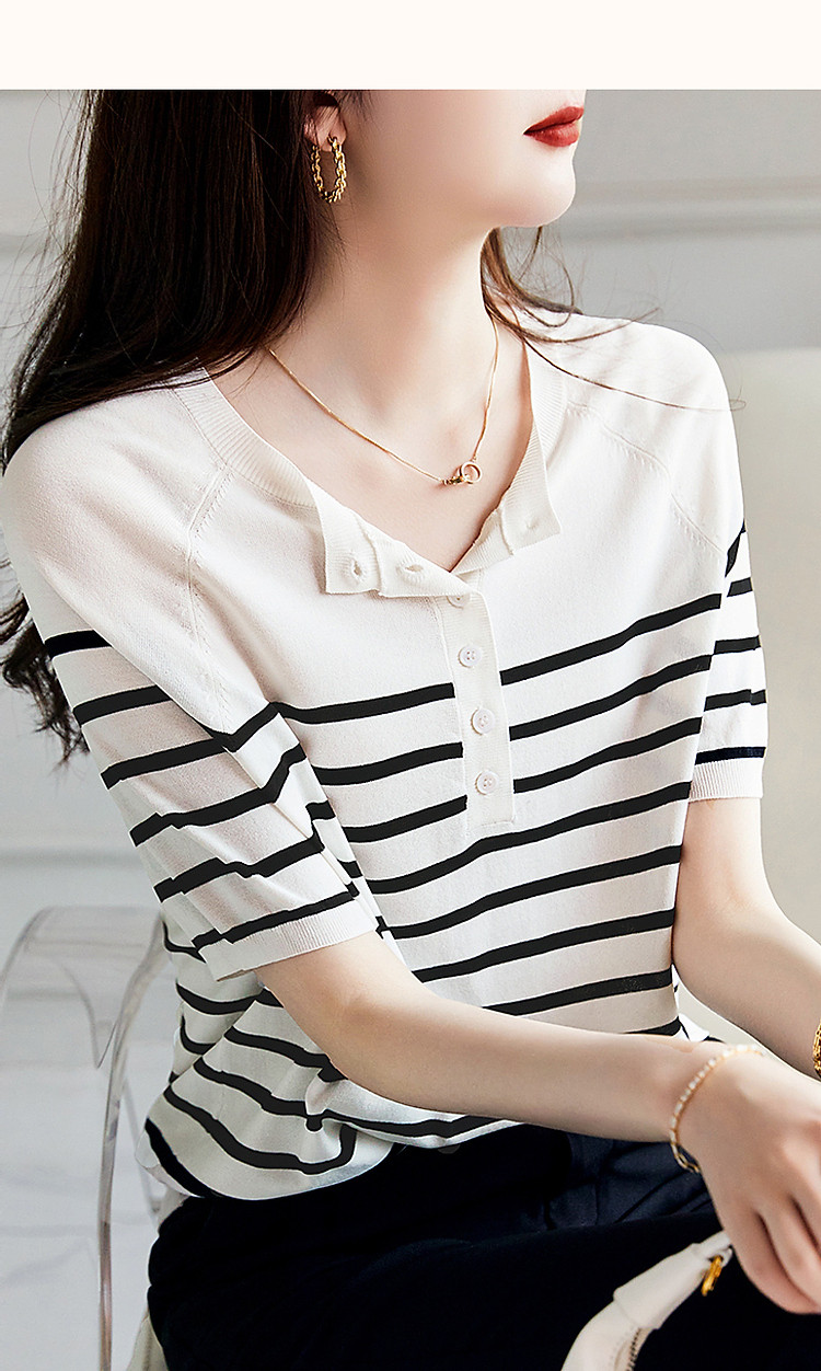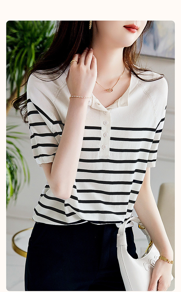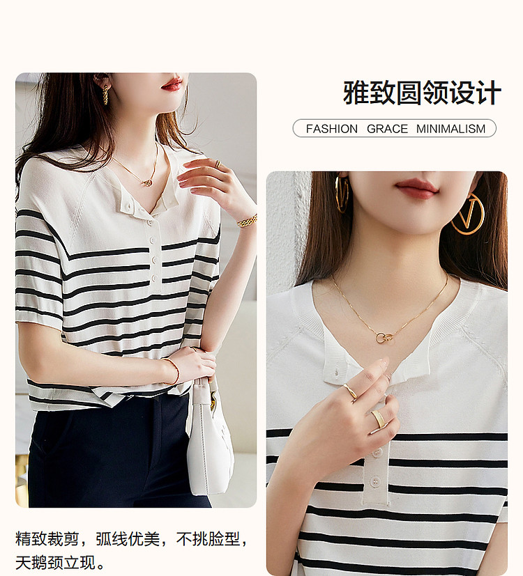 优雅淑女荷叶领含绵羊毛短袖T恤针织打底衫毛衣线衫 219091