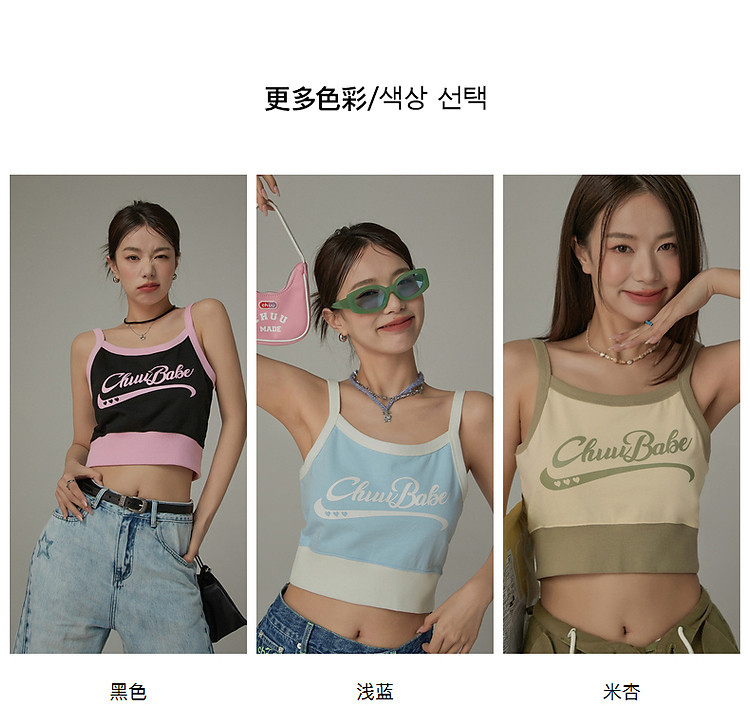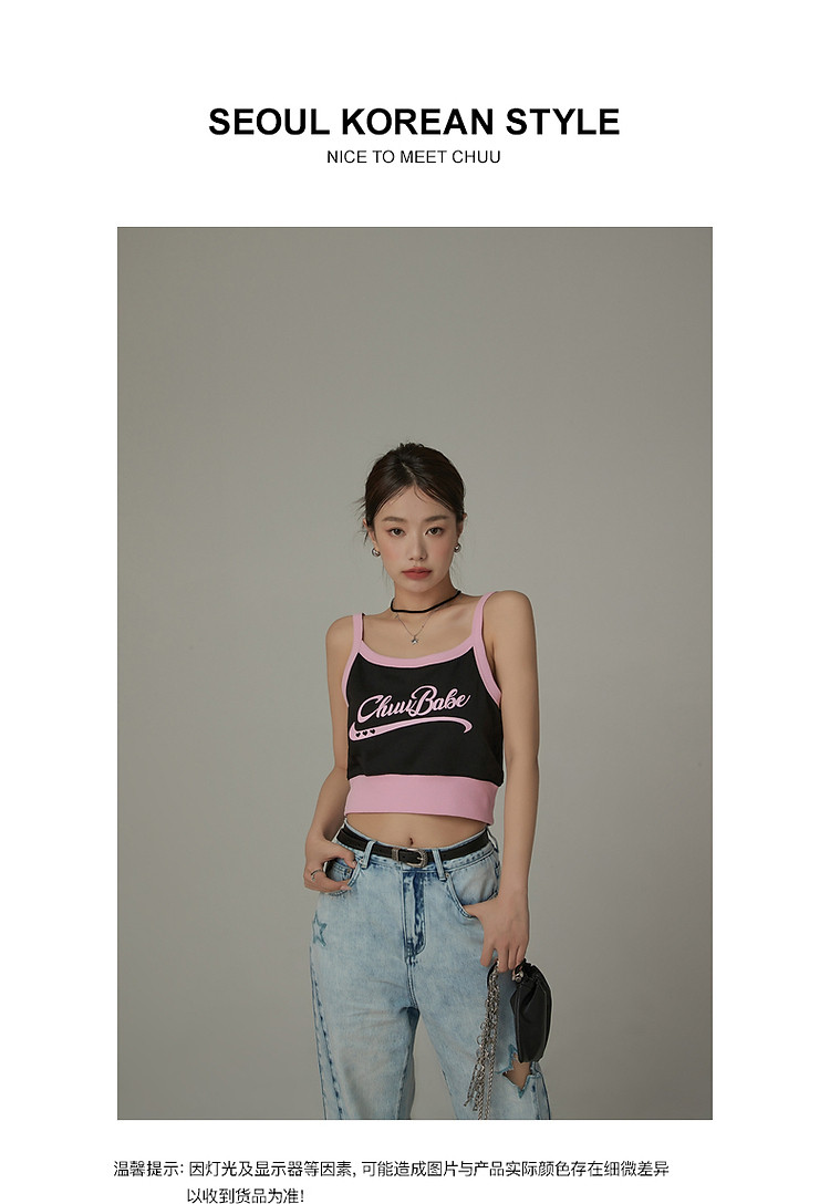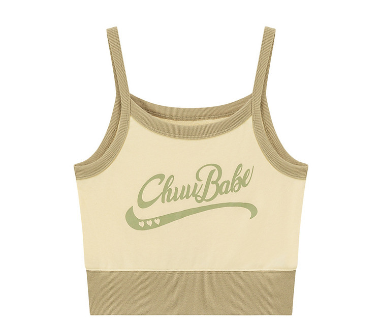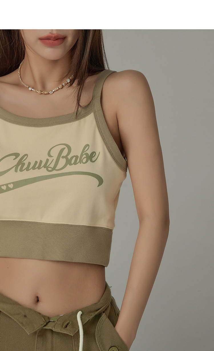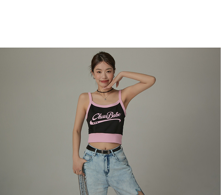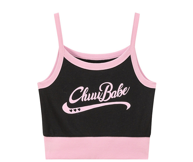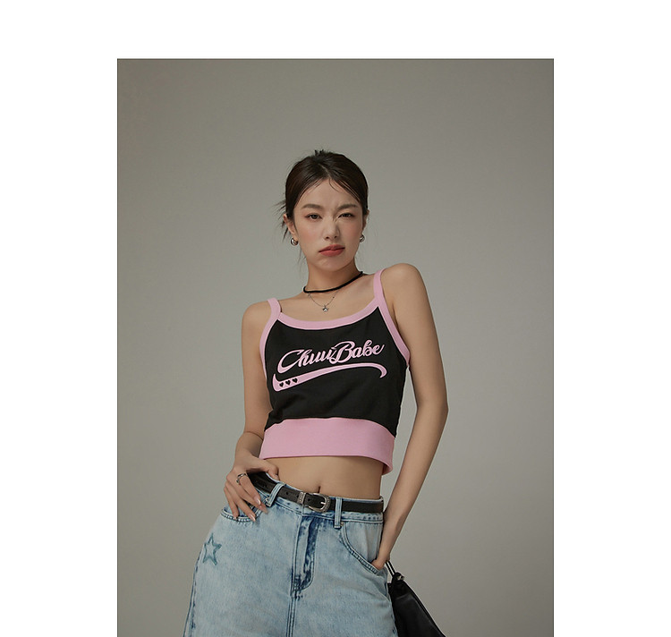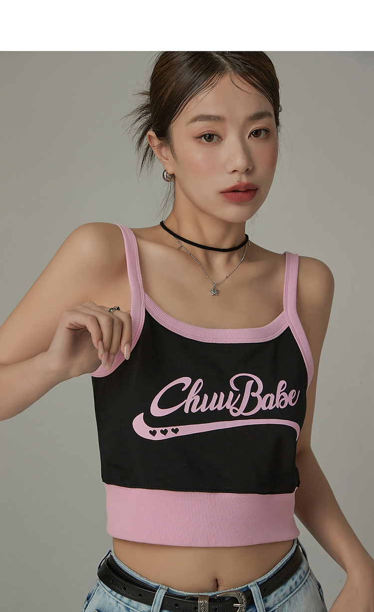 撞色字母吊带背心女士春夏辣妹外穿别致无袖短上衣 433171