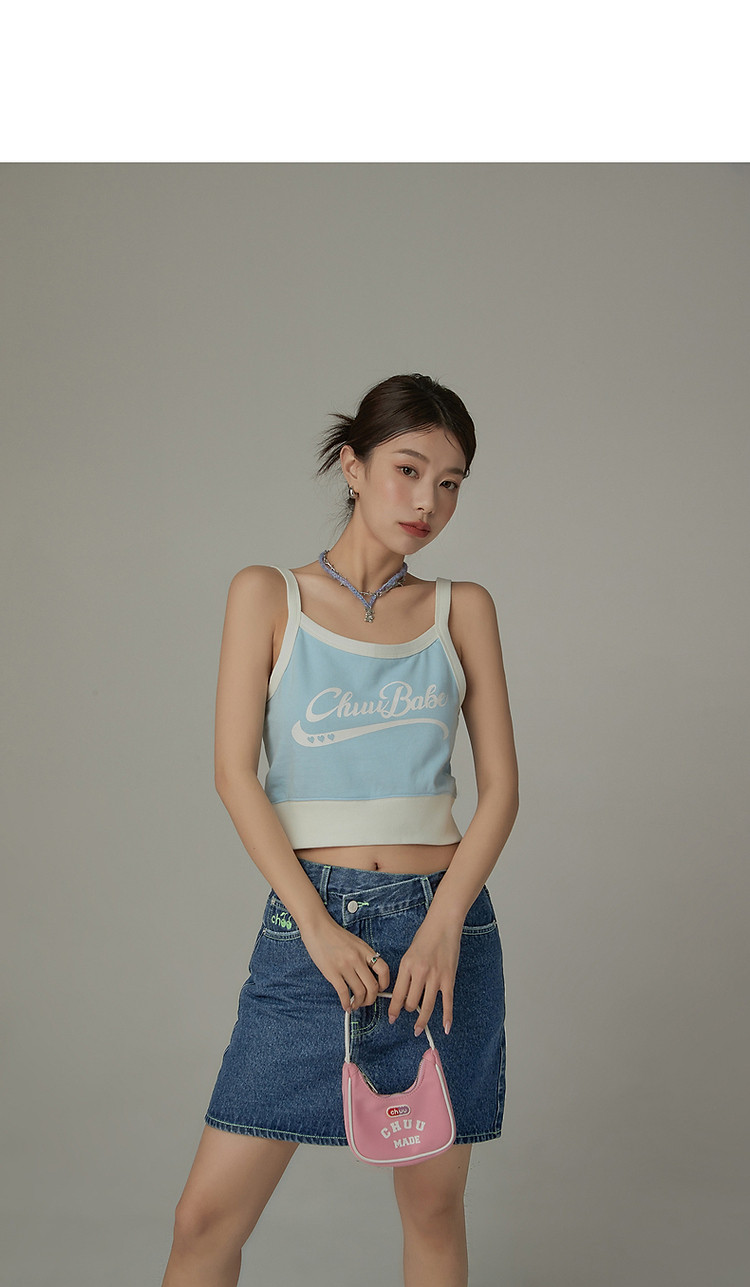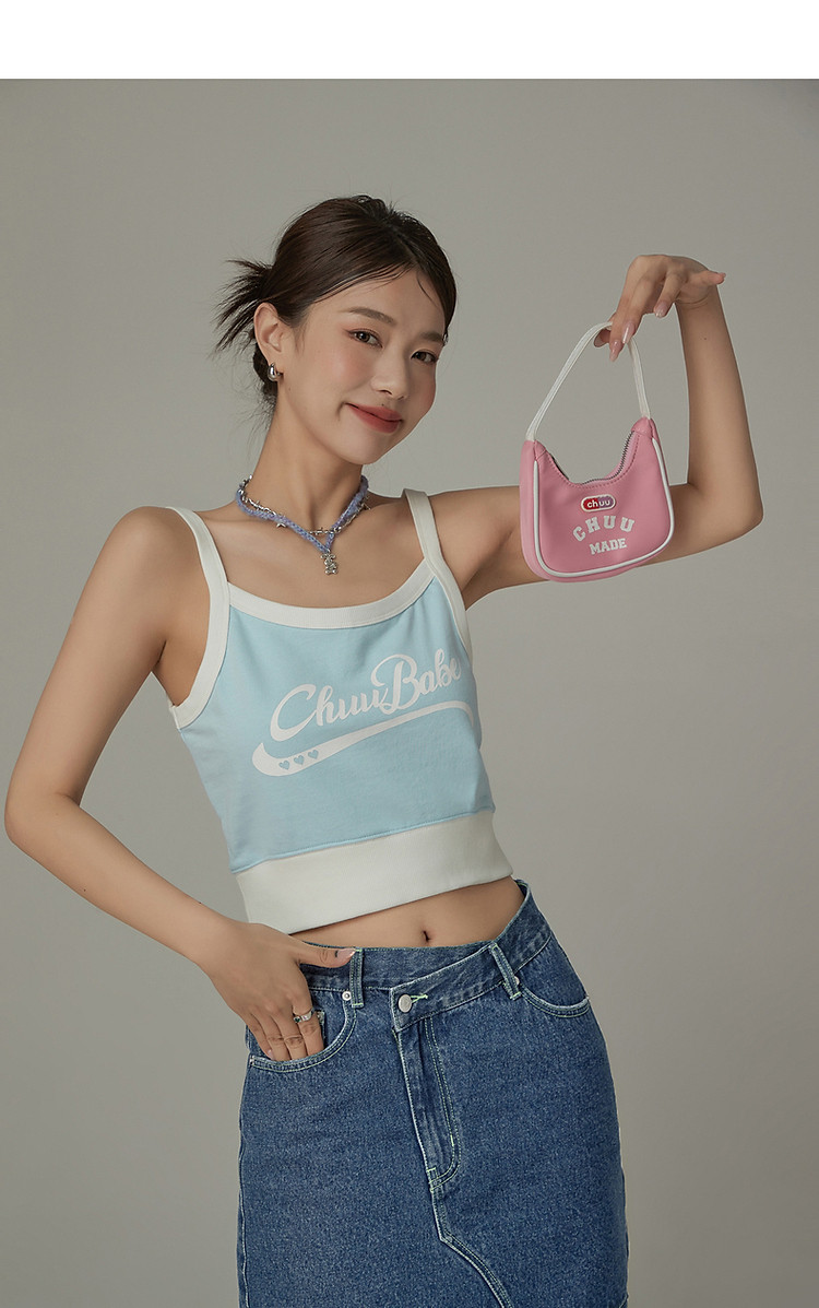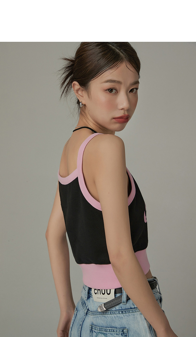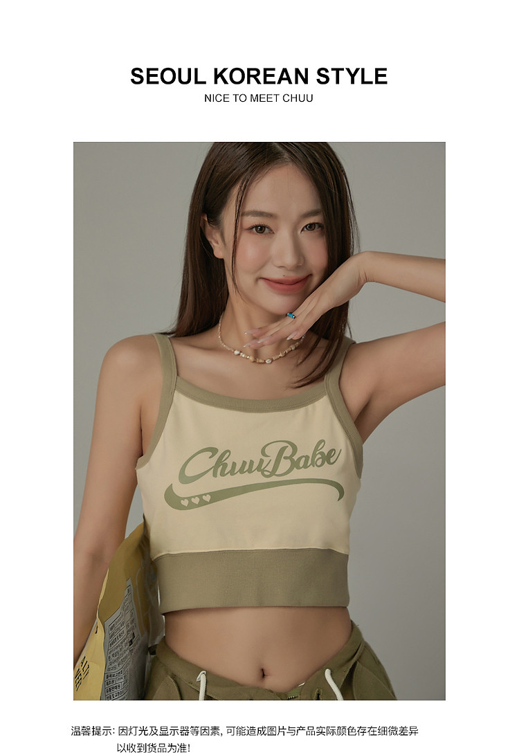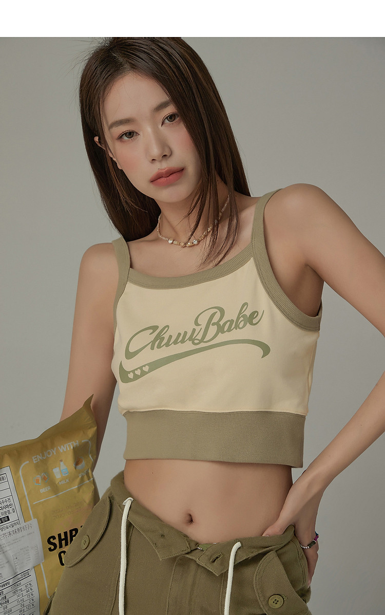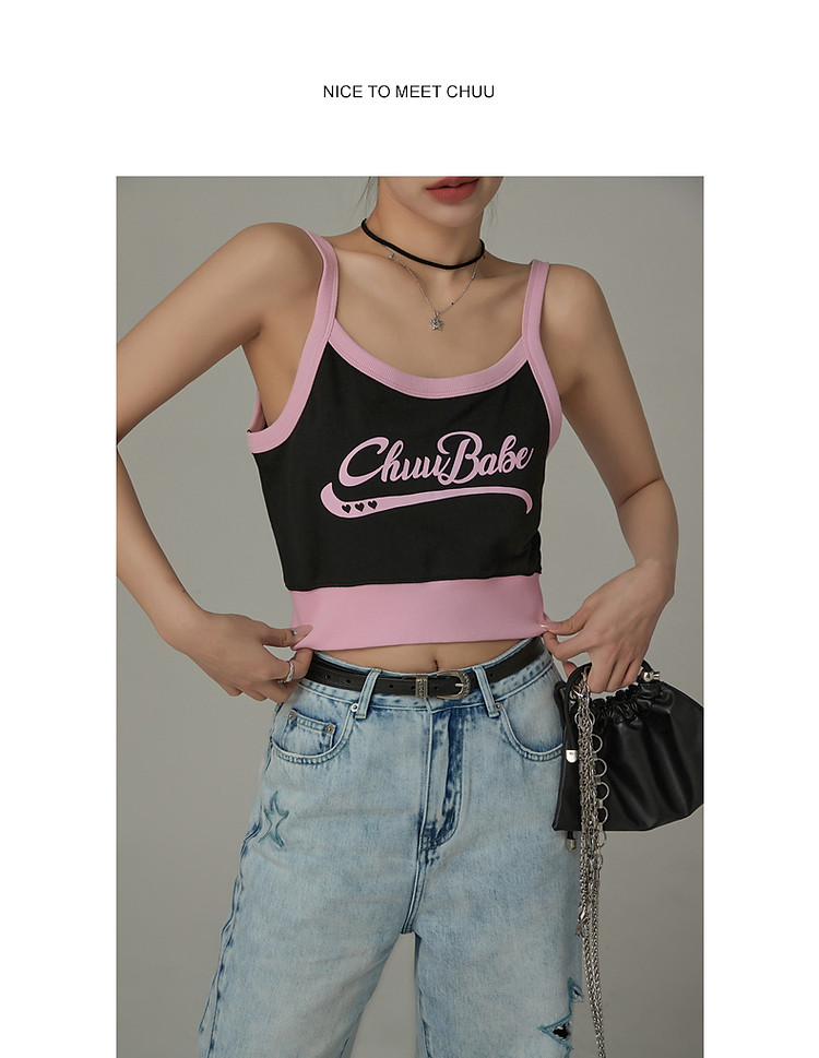 撞色字母吊带背心女士春夏辣妹外穿别致无袖短上衣 433171