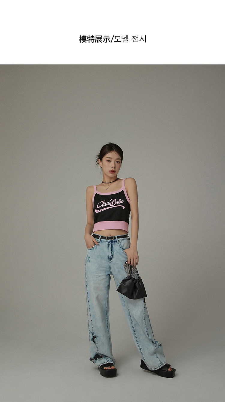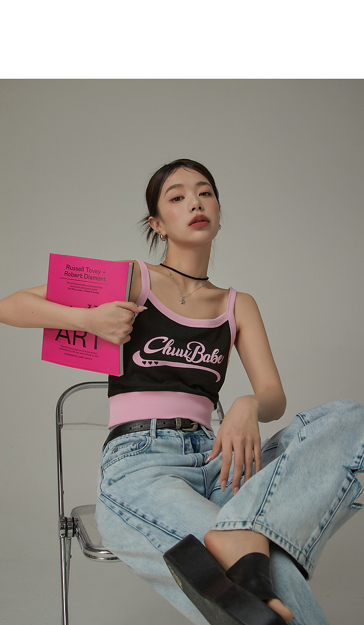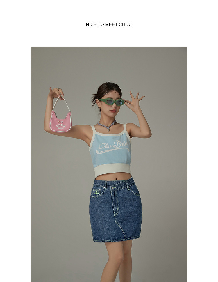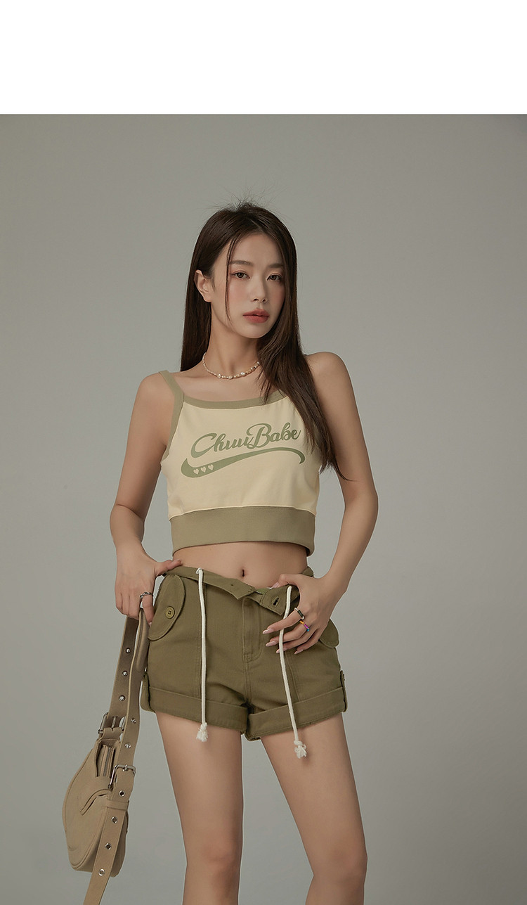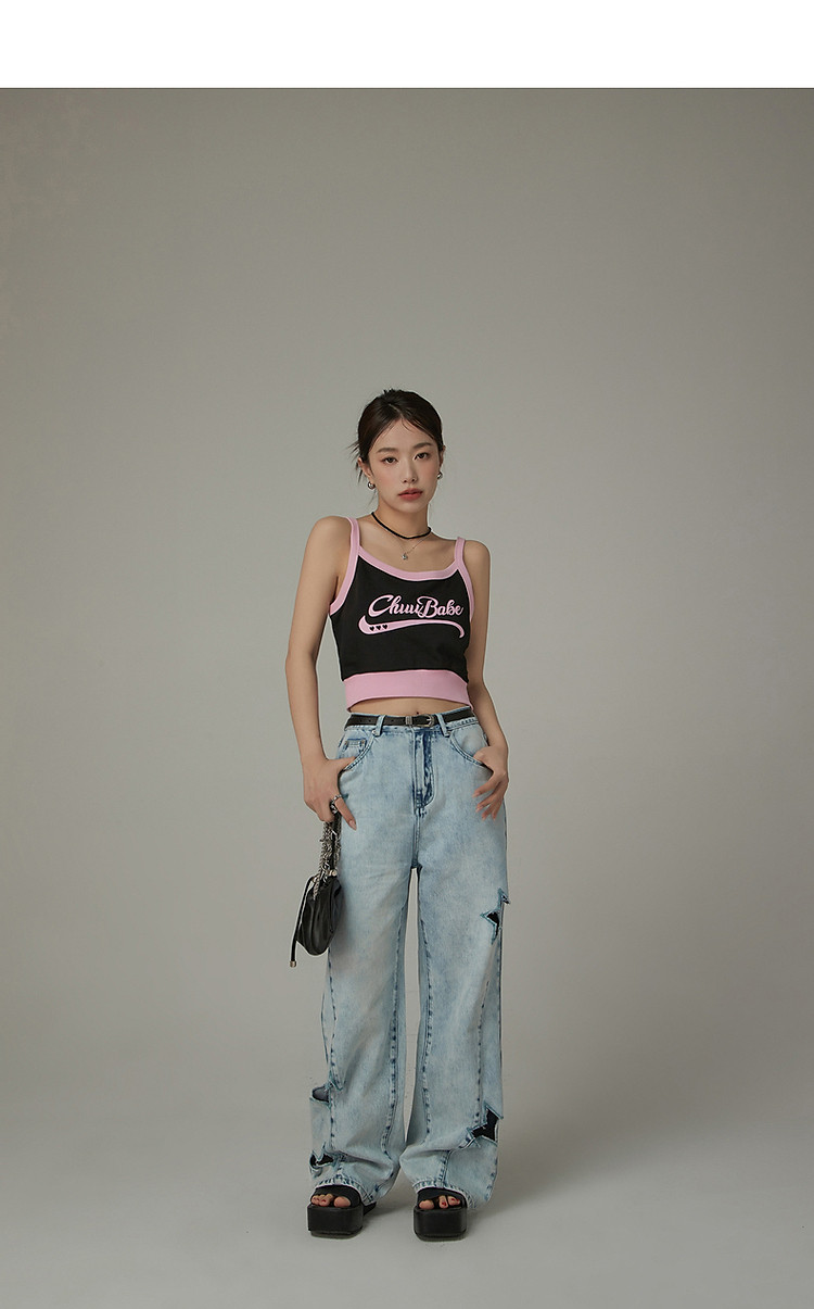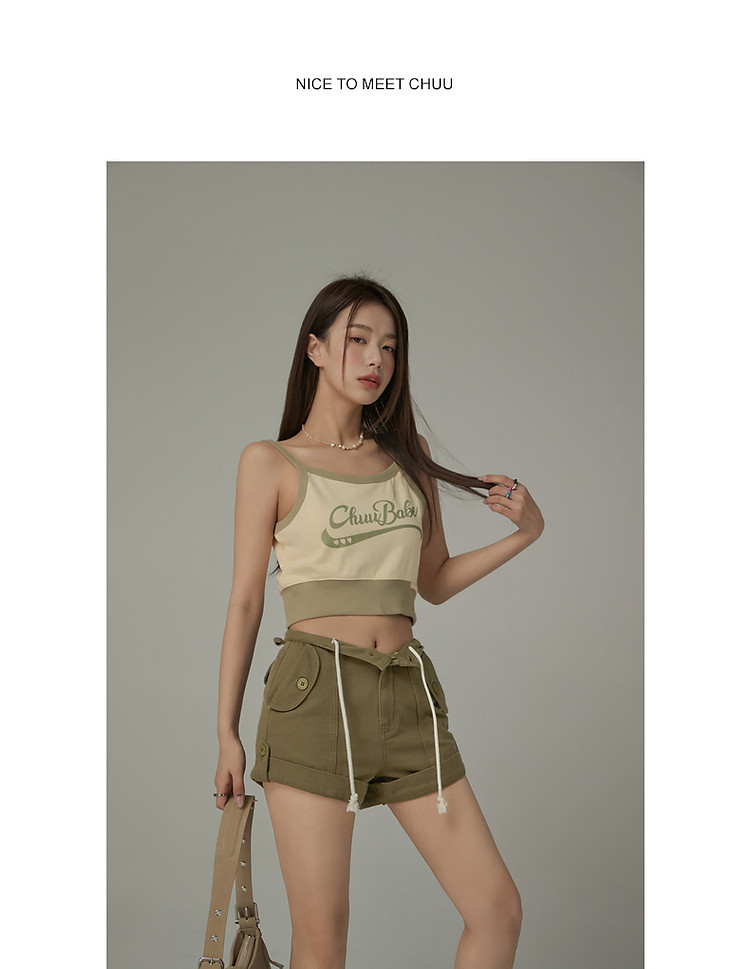 撞色字母吊带背心女士春夏辣妹外穿别致无袖短上衣 433171