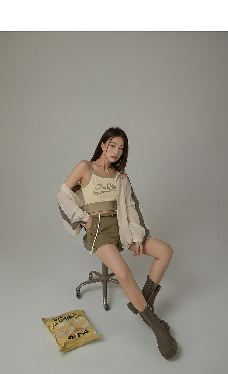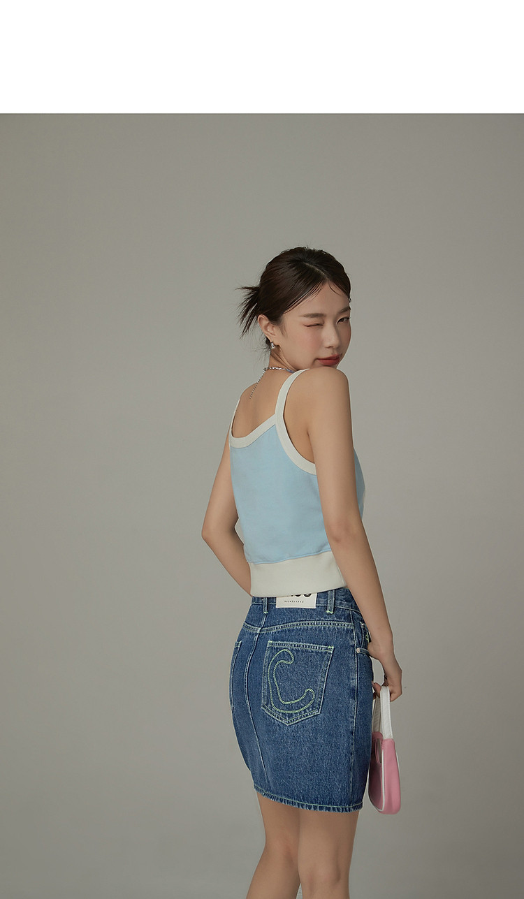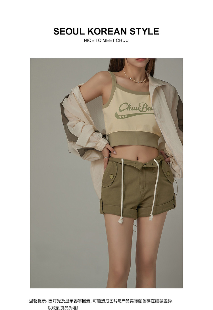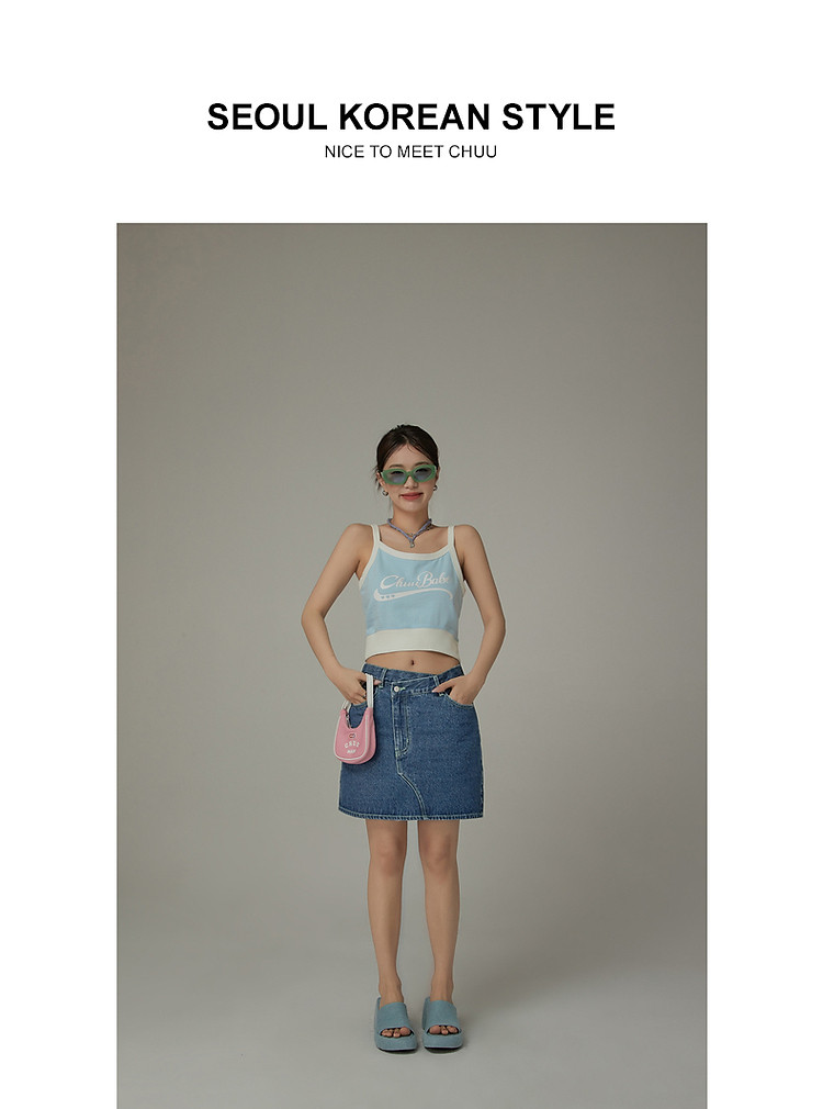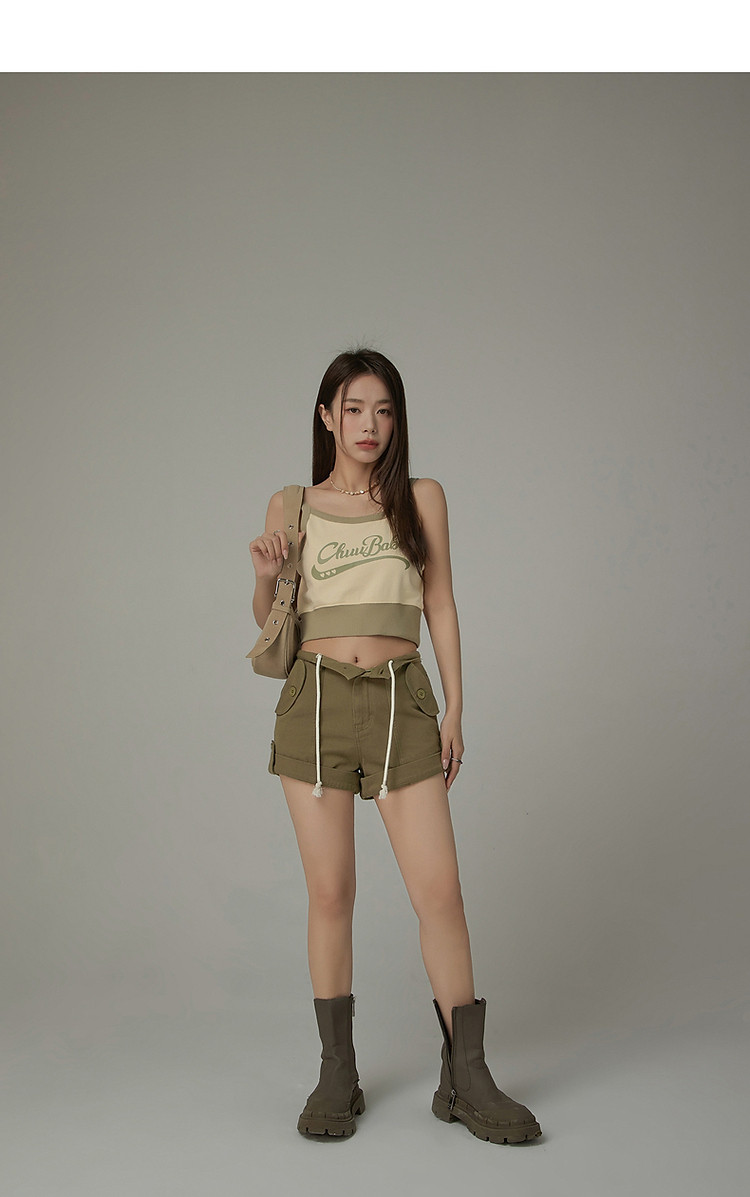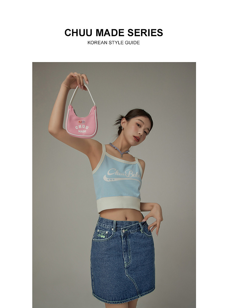 撞色字母吊带背心女士春夏辣妹外穿别致无袖短上衣 433171
