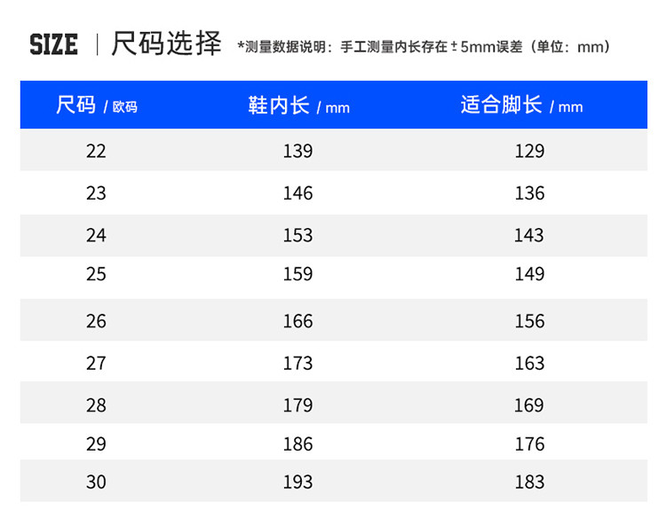 鞋内长(mm)
