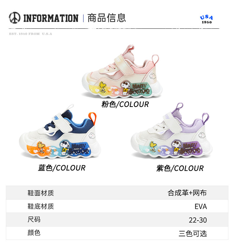 商品名称:【女童亮灯鞋】史努比春秋款男童休闲发光鞋中小童户外运动童鞋 221661