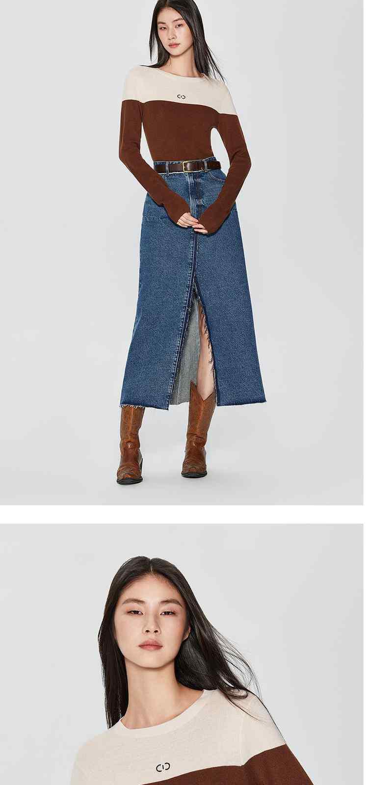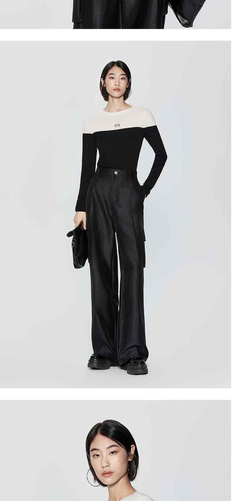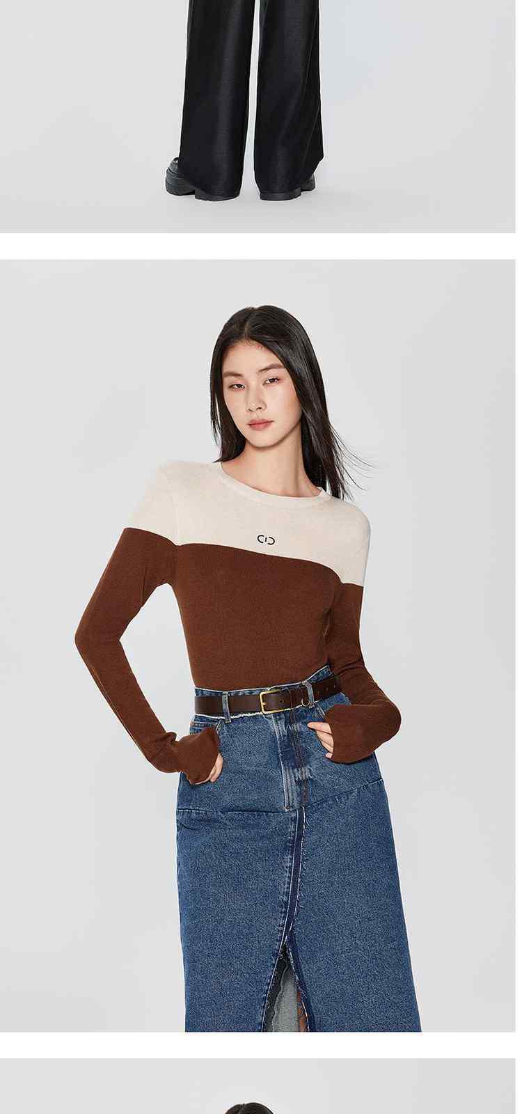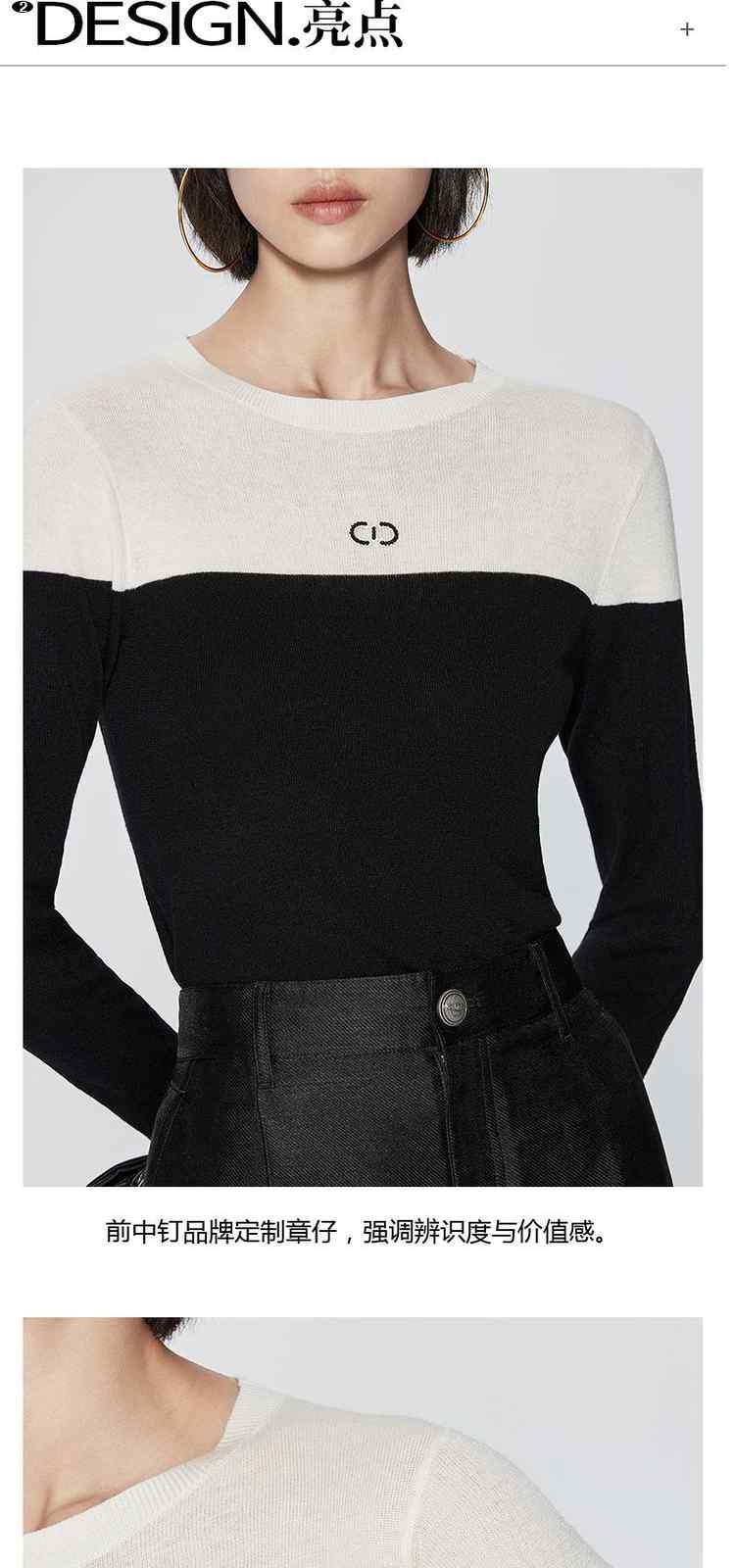 春装 撞色绣花打底上衣丝光羊毛针织毛衣女 418703