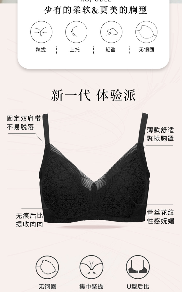 商品名称:【无钢圈全罩杯】内衣文胸收副乳防下垂聚拢上托蜂巢布夏薄款内衣 285579