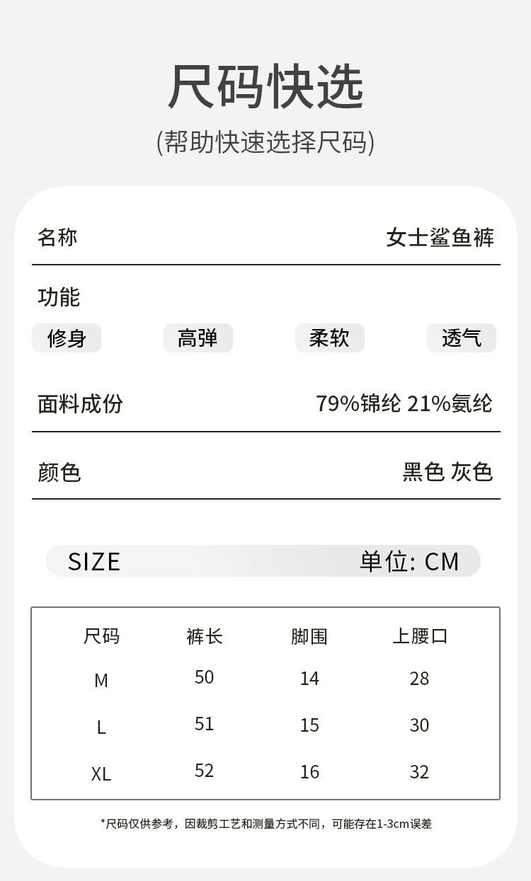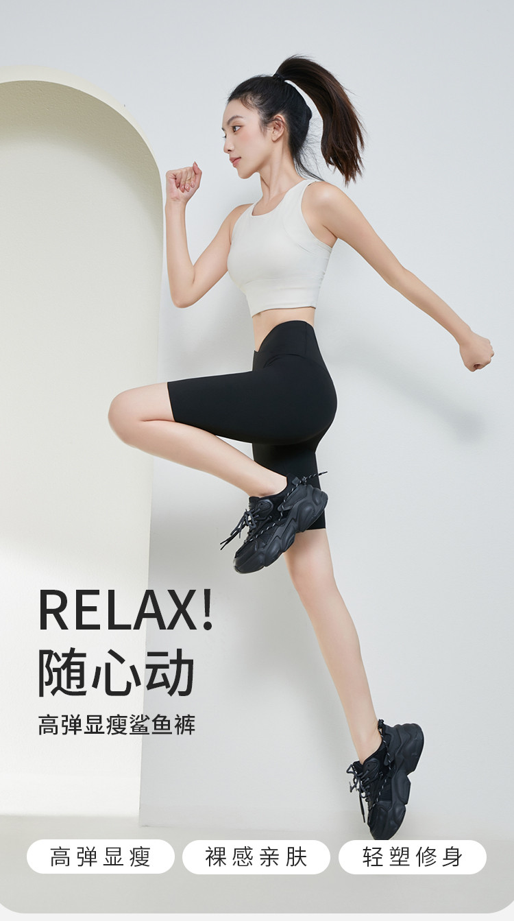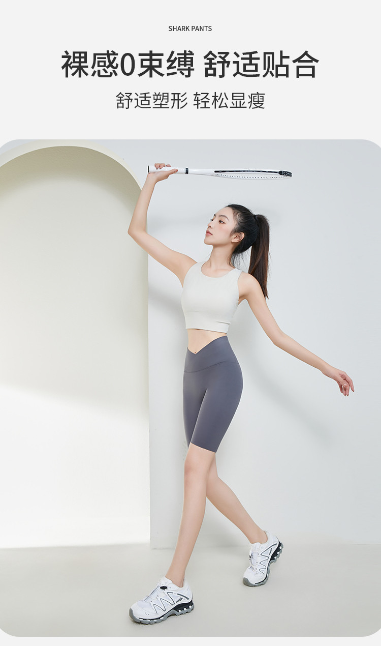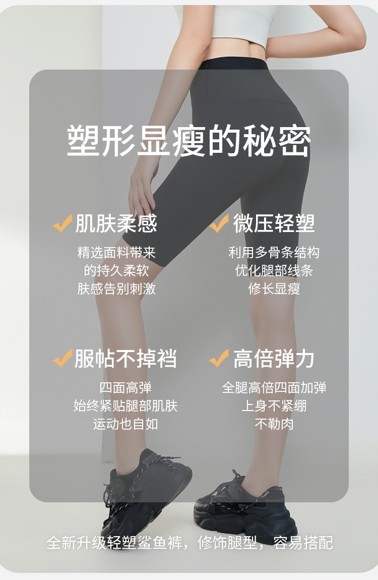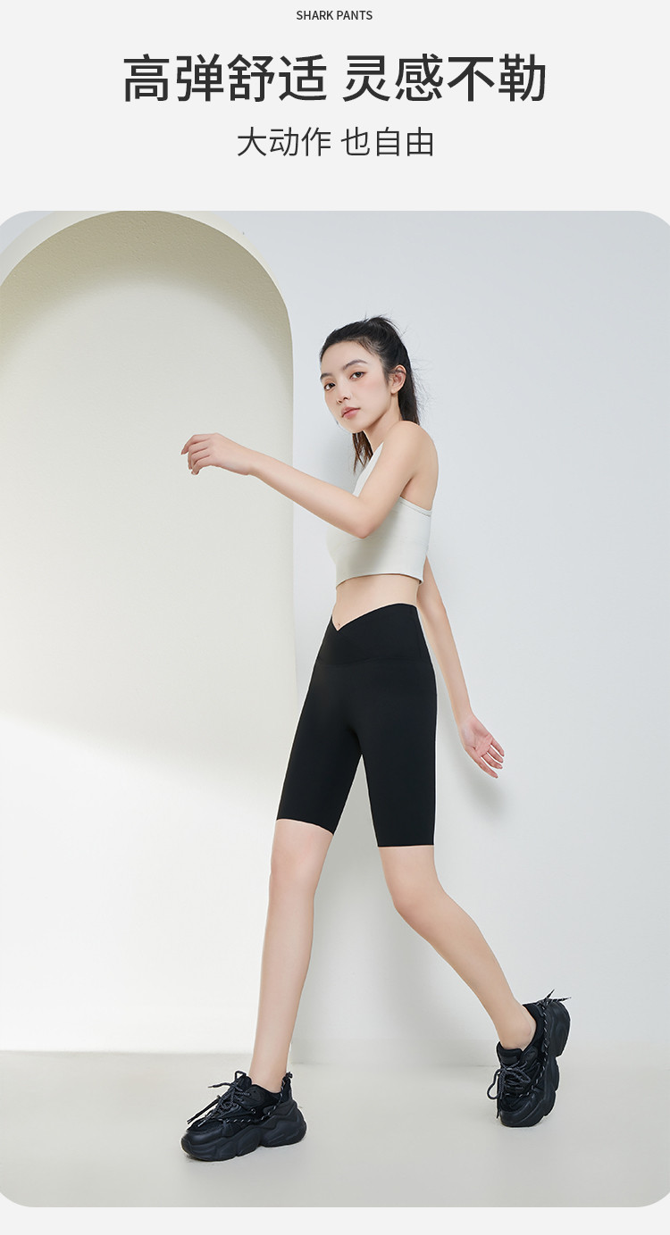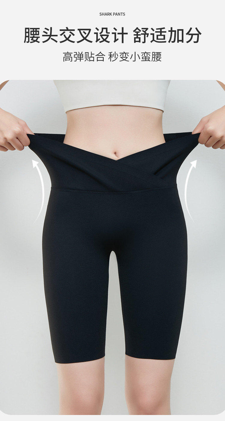 商品名称:【清爽透气】夏季薄款冰丝骑行女运动瑜伽鲨鱼裤可外穿五分打底裤 361931