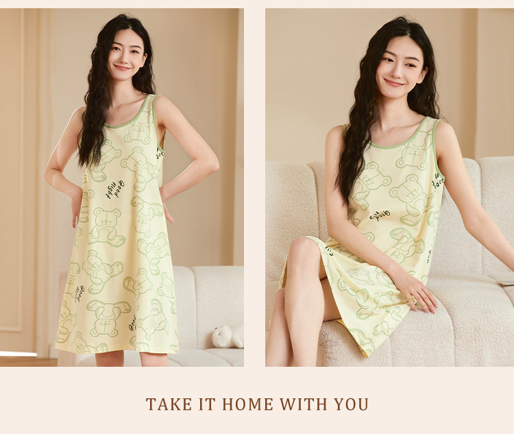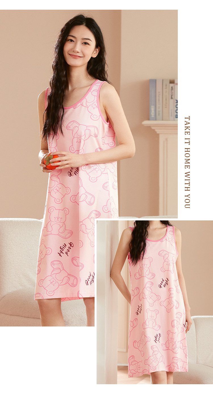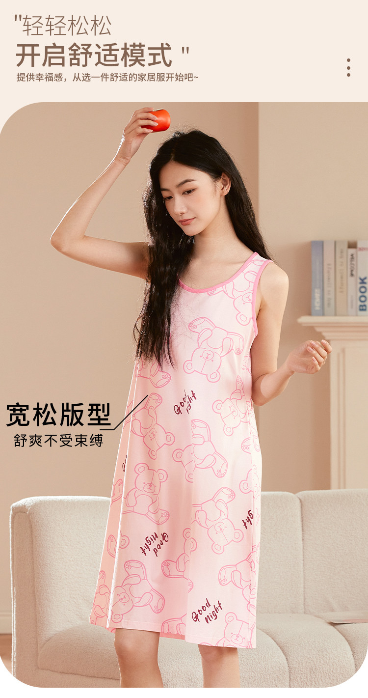 商品名称:【居家休闲】可爱小熊套头无袖女士睡裙柔软舒适亲肤透气 939147