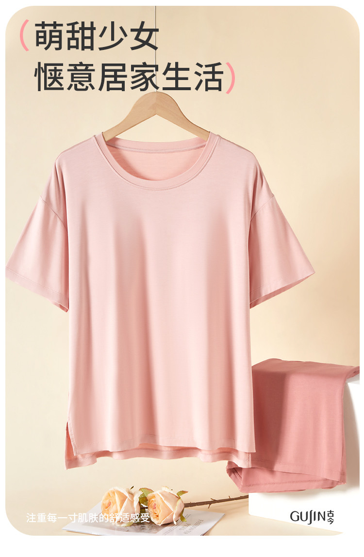 商品名称:【断码捡漏自带胸垫】睡衣女夏季圆领透气亲肤短袖短裤女士家居服 983179