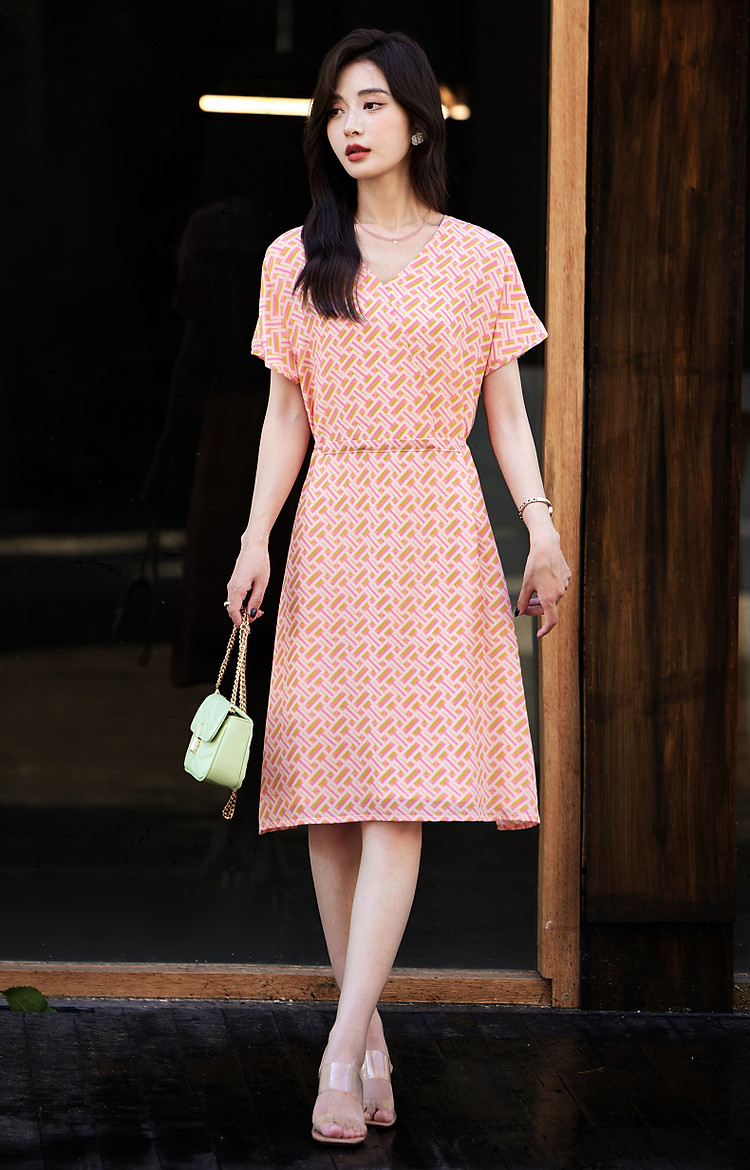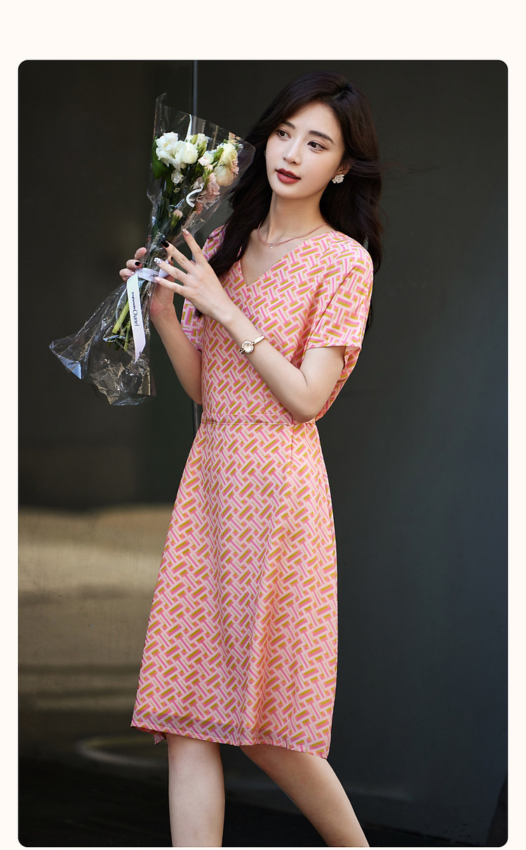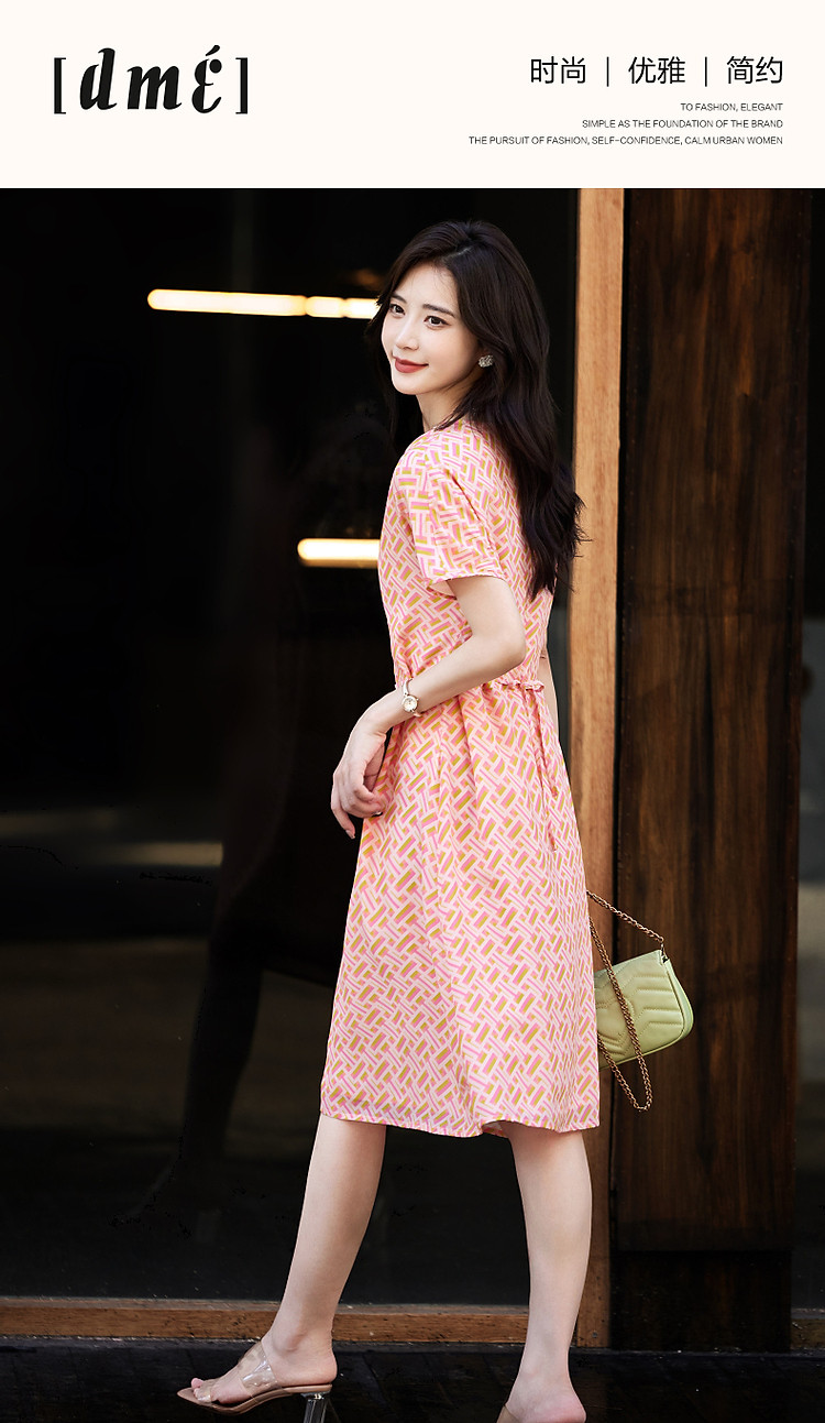 商品名称:【流光之夏】夏高阶感桑蚕丝真丝抽绳藏肉好搭女式连衣裙 723201