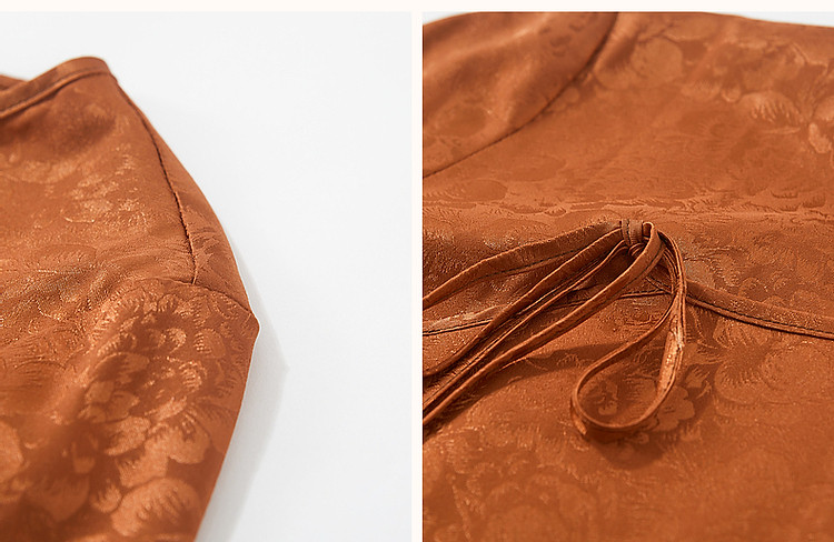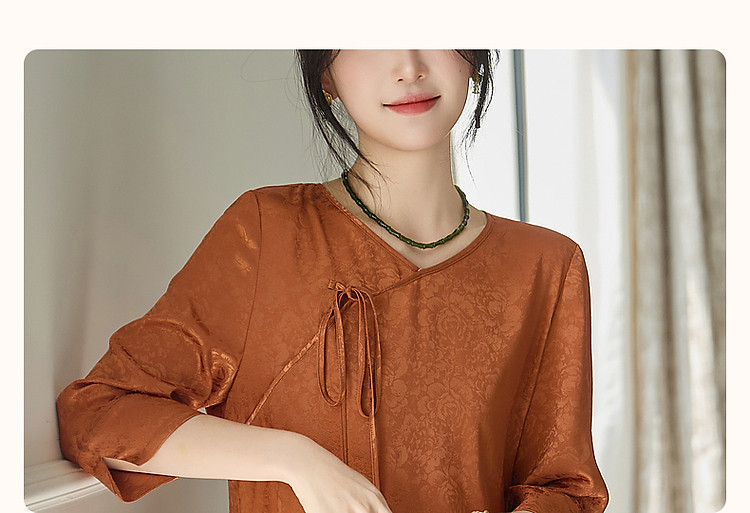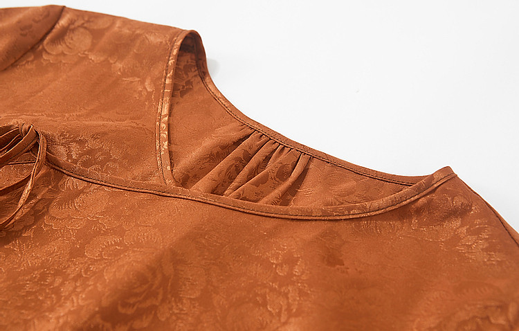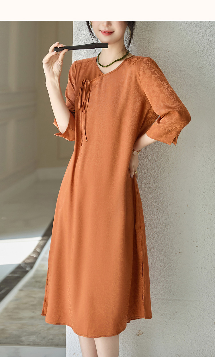 商品名称:【东方禅意美学】夏国风新中式V领绑带五分袖提花舒适藏肉连衣裙 887489