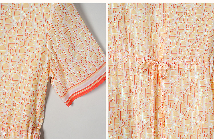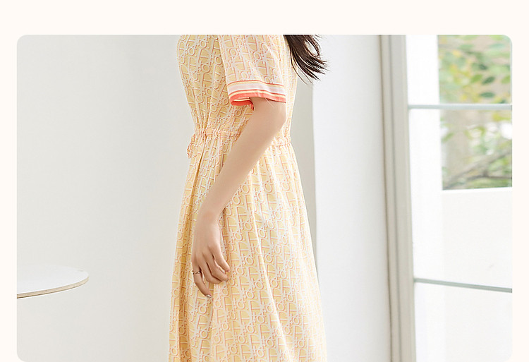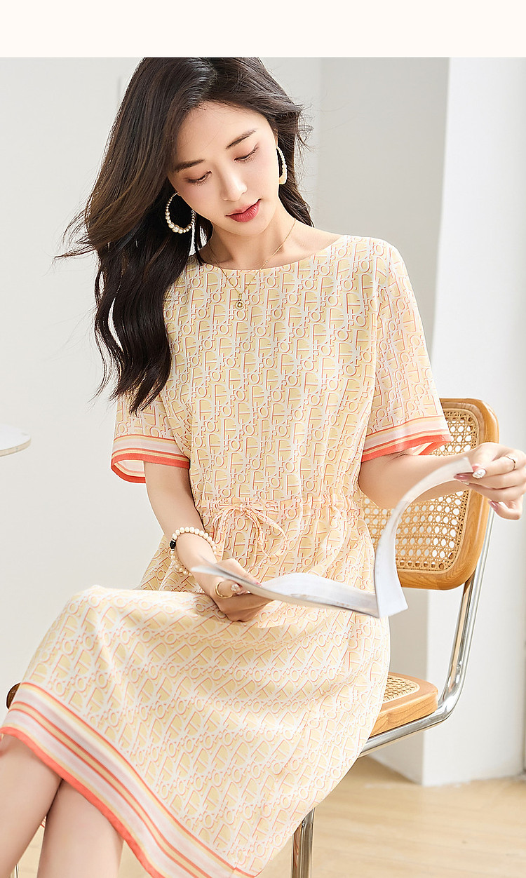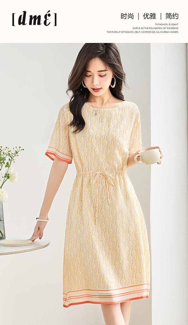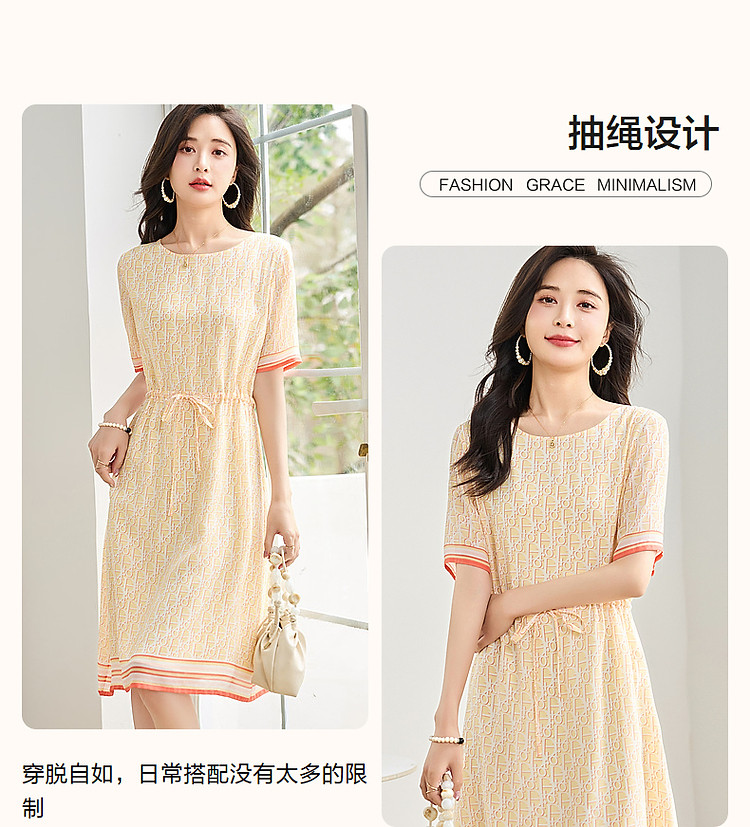 商品名称:【法式仙感氧气】夏奢享桑蚕丝定位印花抽绳淑女连衣裙 019329