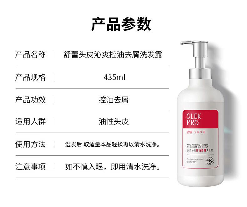 商品名称:Slek/舒蕾 头皮沁爽控油去屑洗发露 435ml 深层清洁