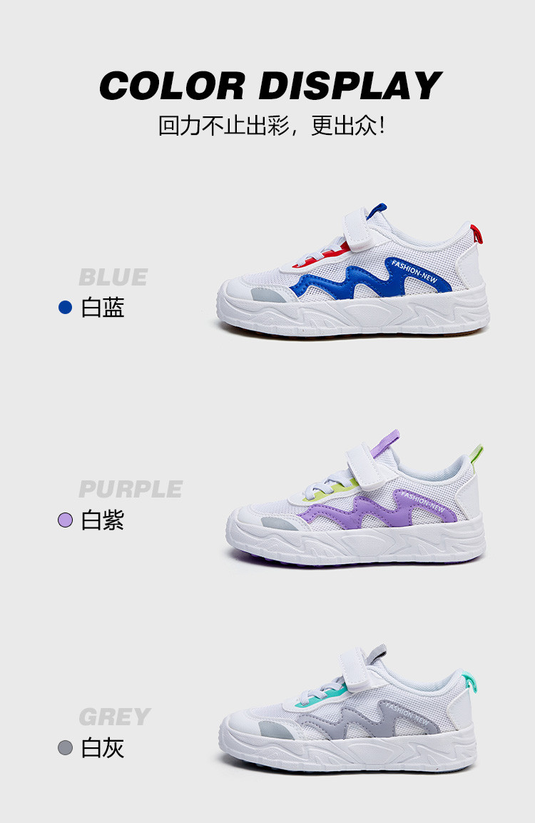 商品名称:【回力童鞋】儿童户外休闲时尚网鞋镂空透气舒适校园风格儿童鞋 389136