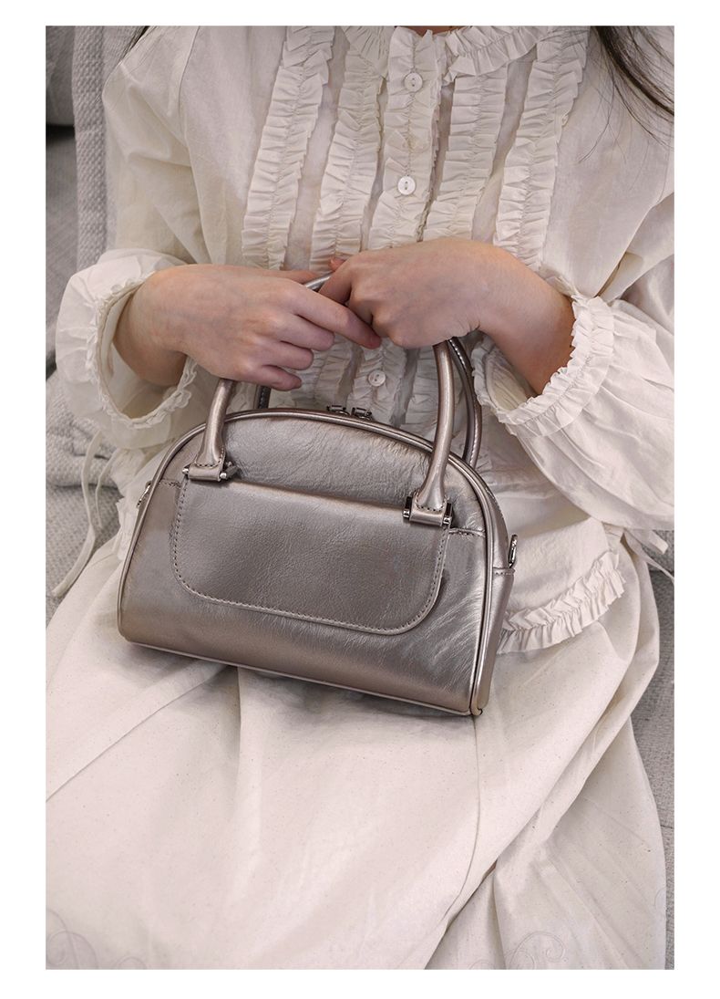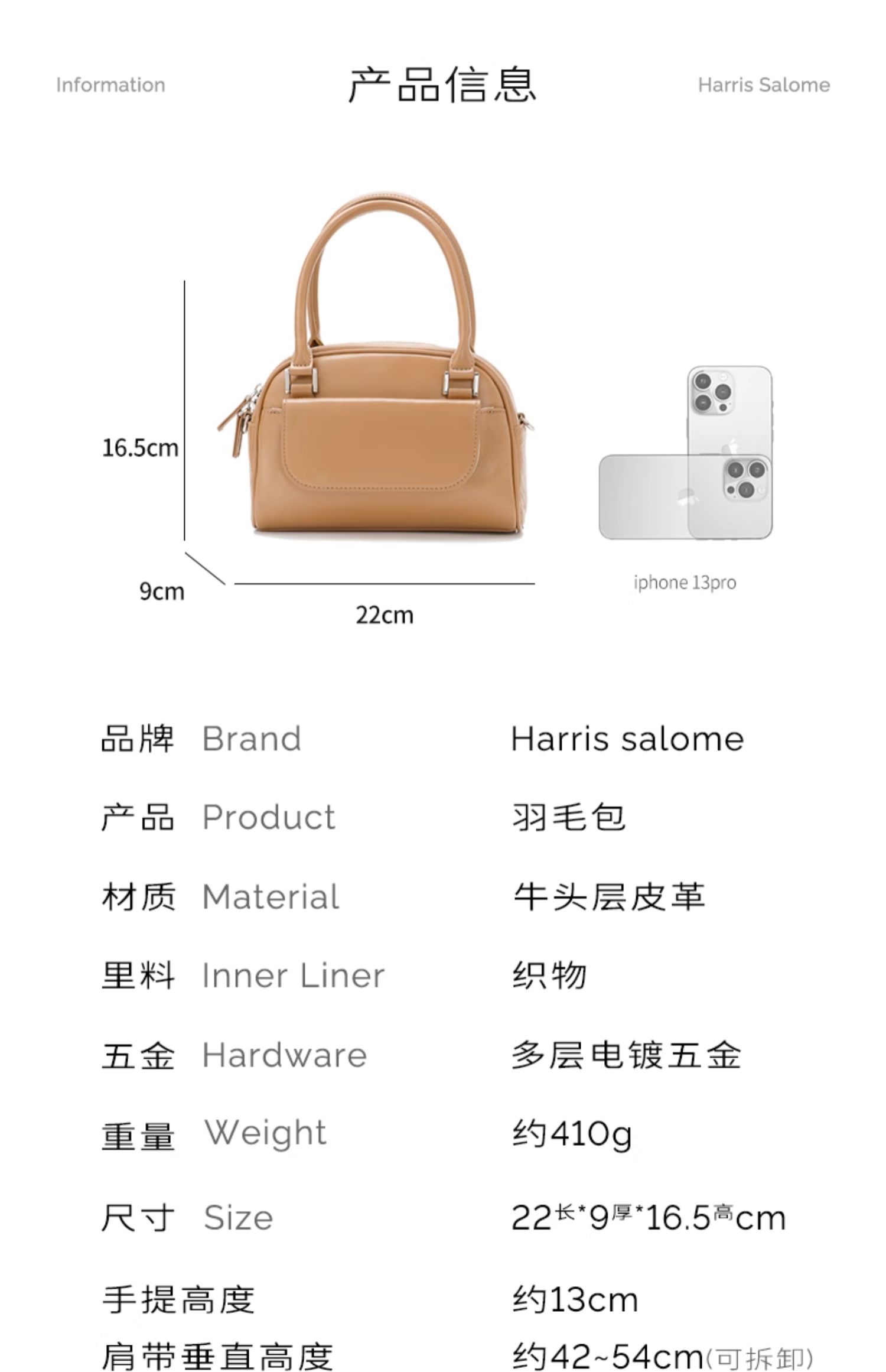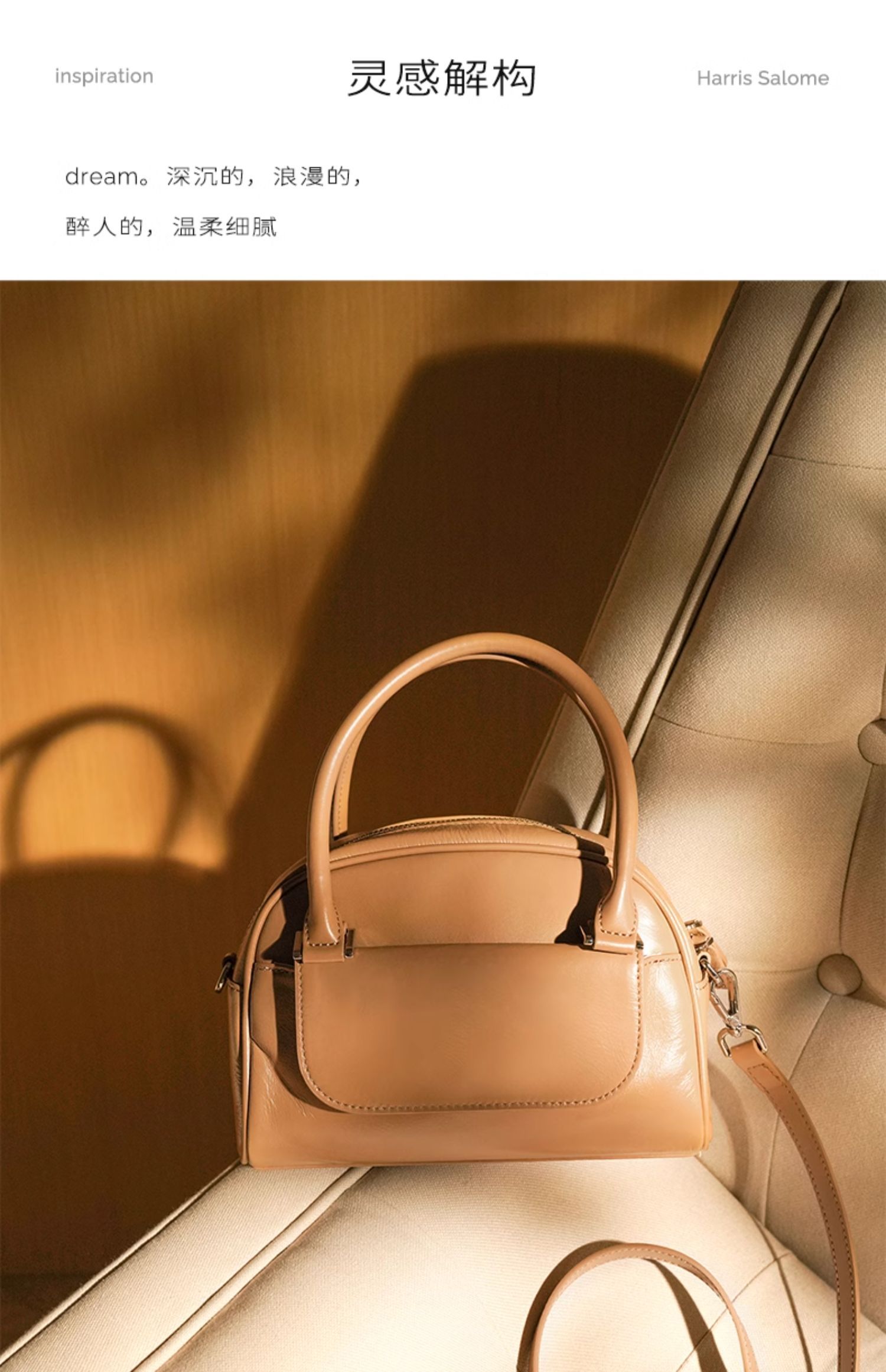 商品名称:Harris Salome 羽毛包头层牛皮超柔软手提斜挎波士顿包
