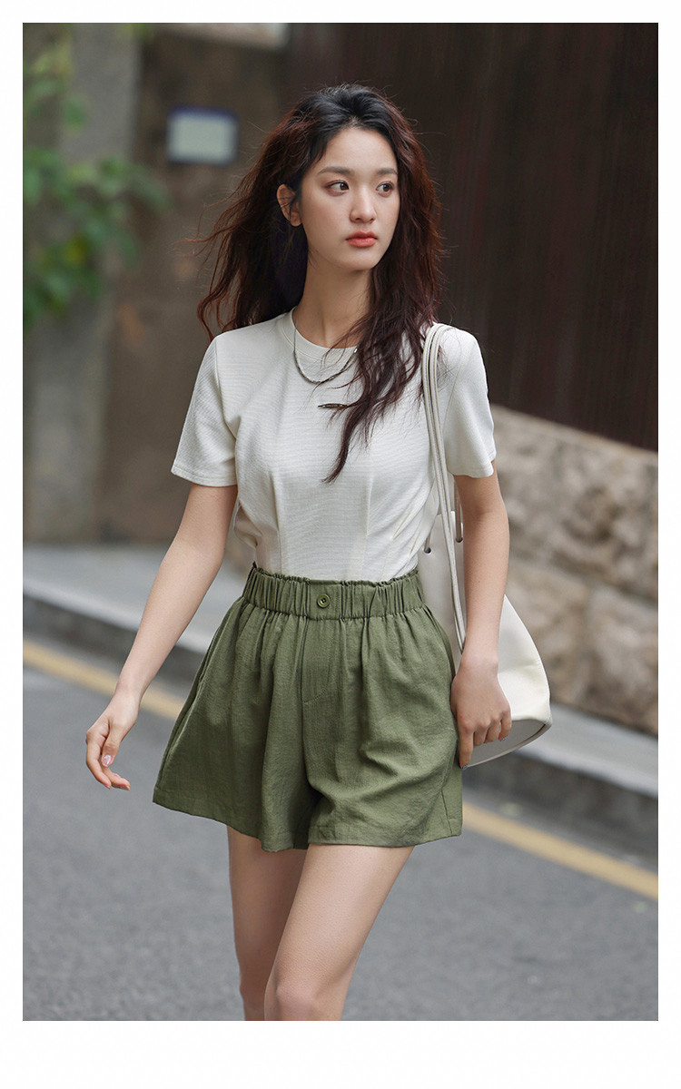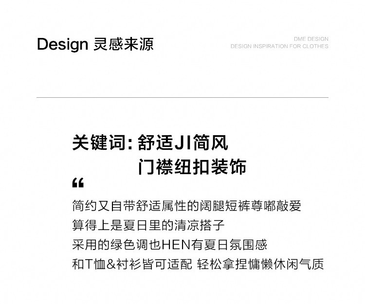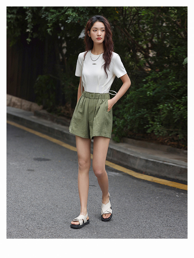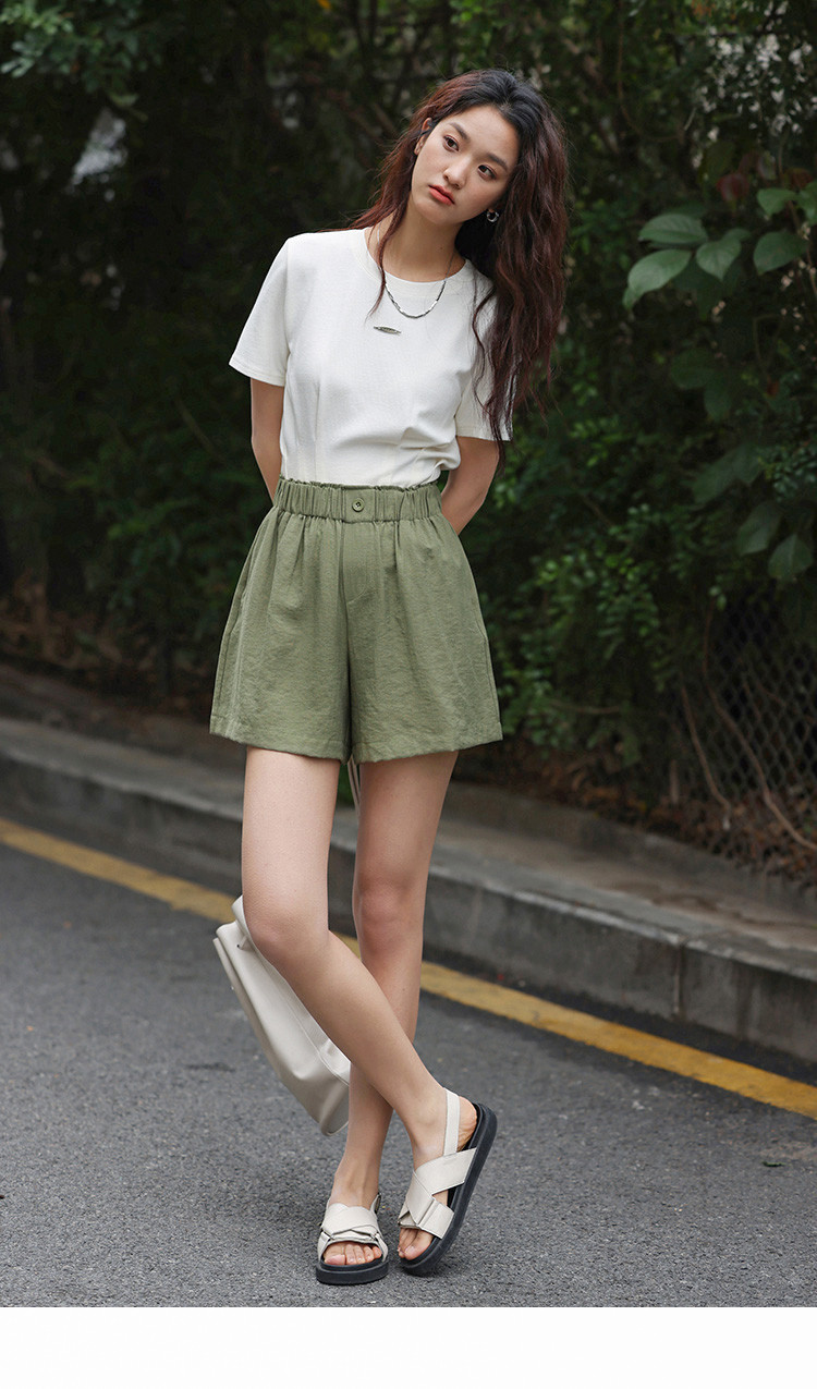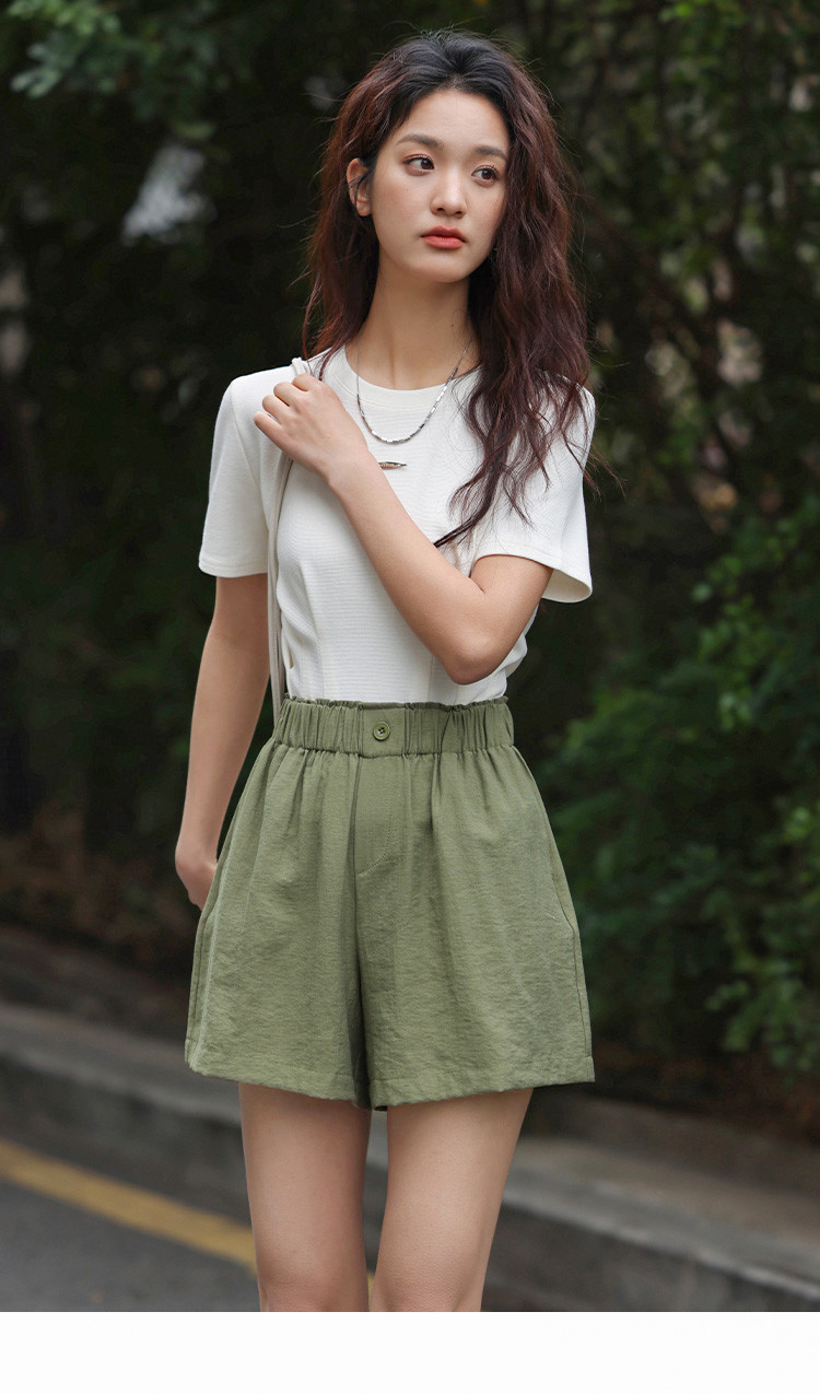 【简约风阔腿短裤】夏慵懒感松紧腰头一粒扣阔腿短裤 539778