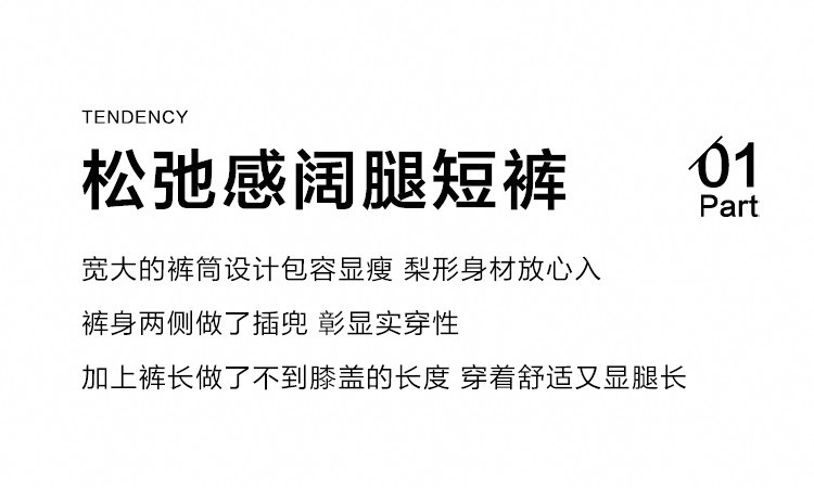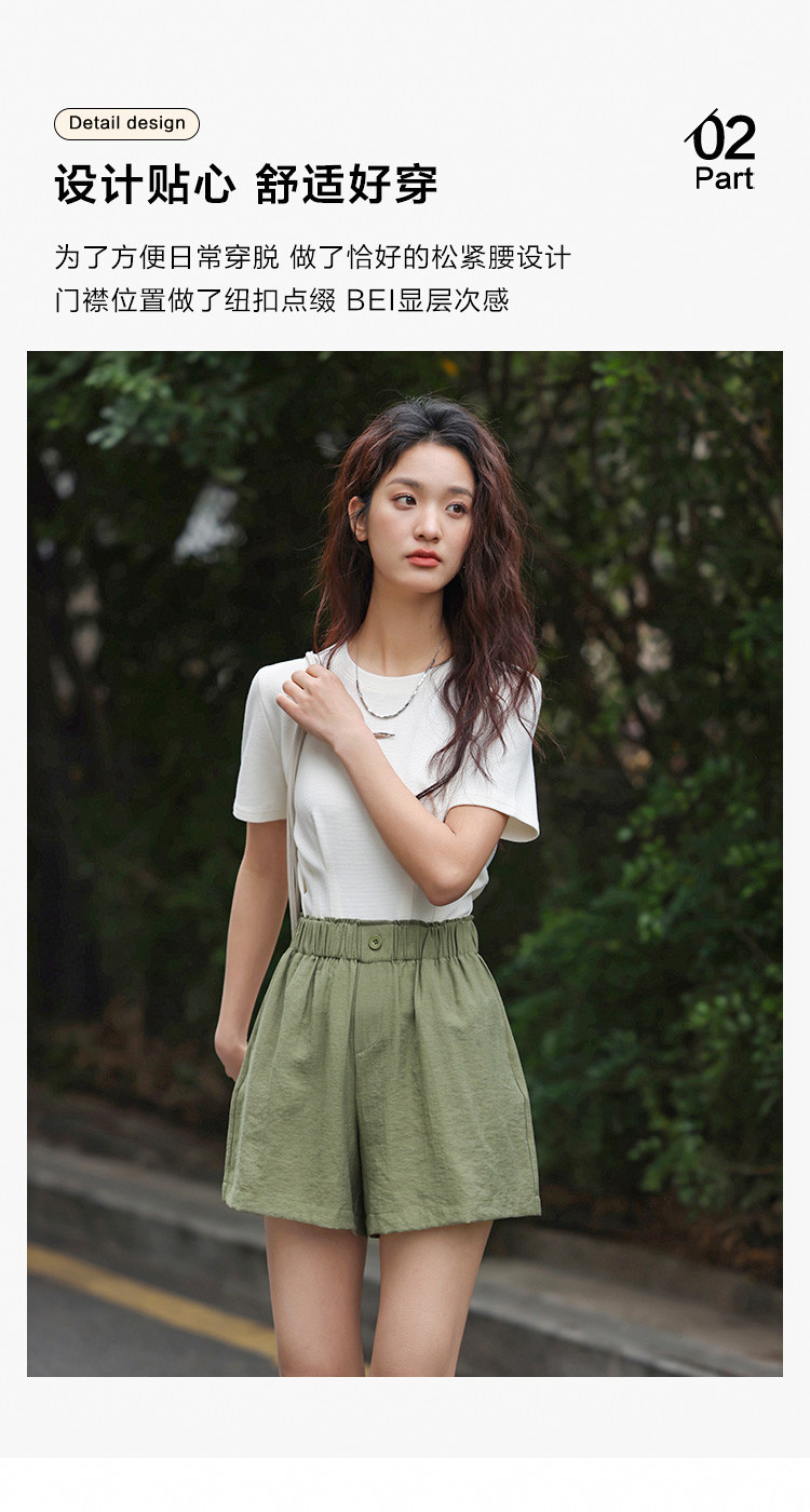 商品名称:【简约风阔腿短裤】夏慵懒感松紧腰头一粒扣阔腿短裤 539778
