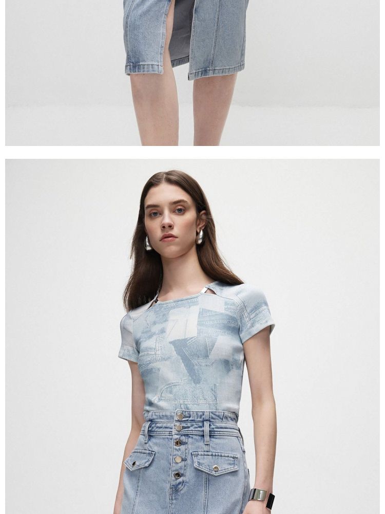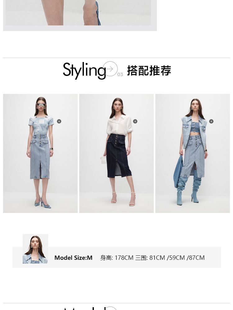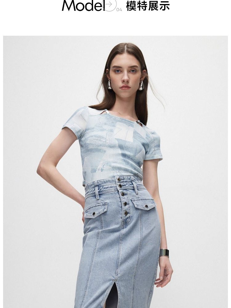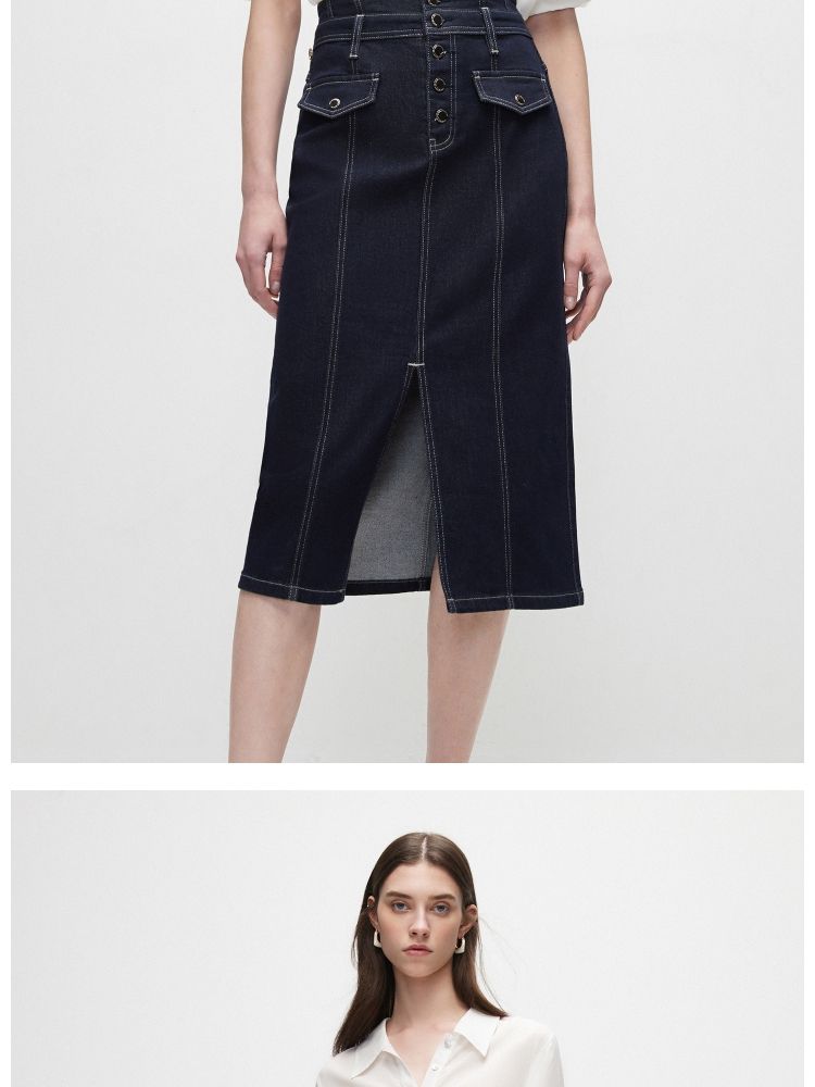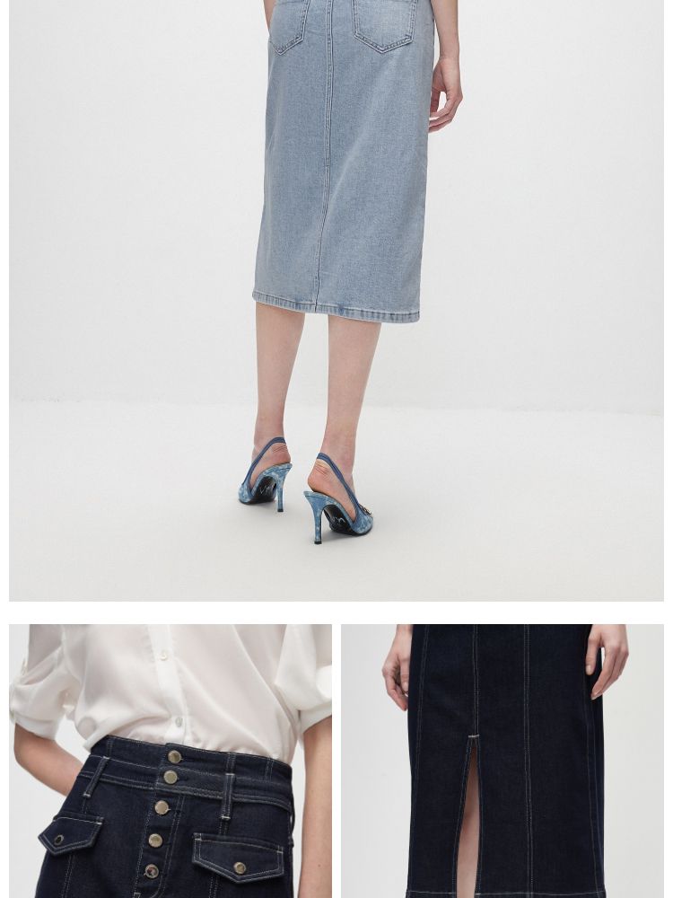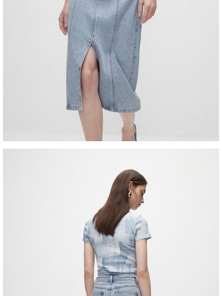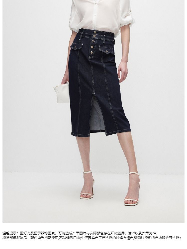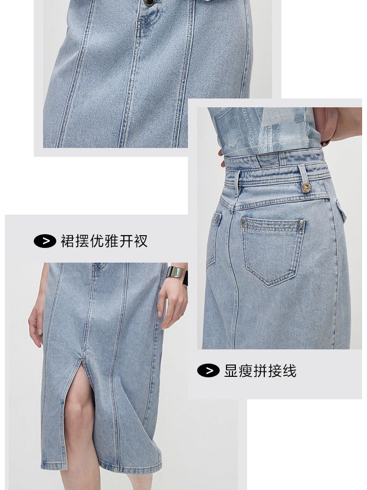 商品名称:【时尚高腰】夏季H型开叉中长裙牛仔半身裙女 636058