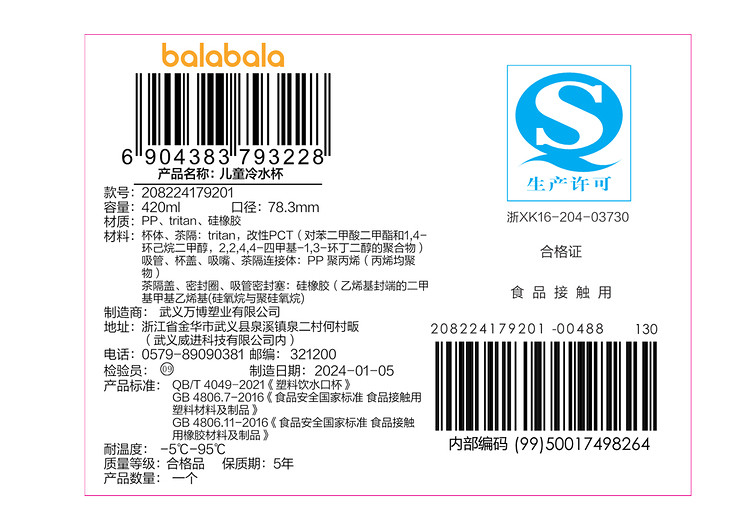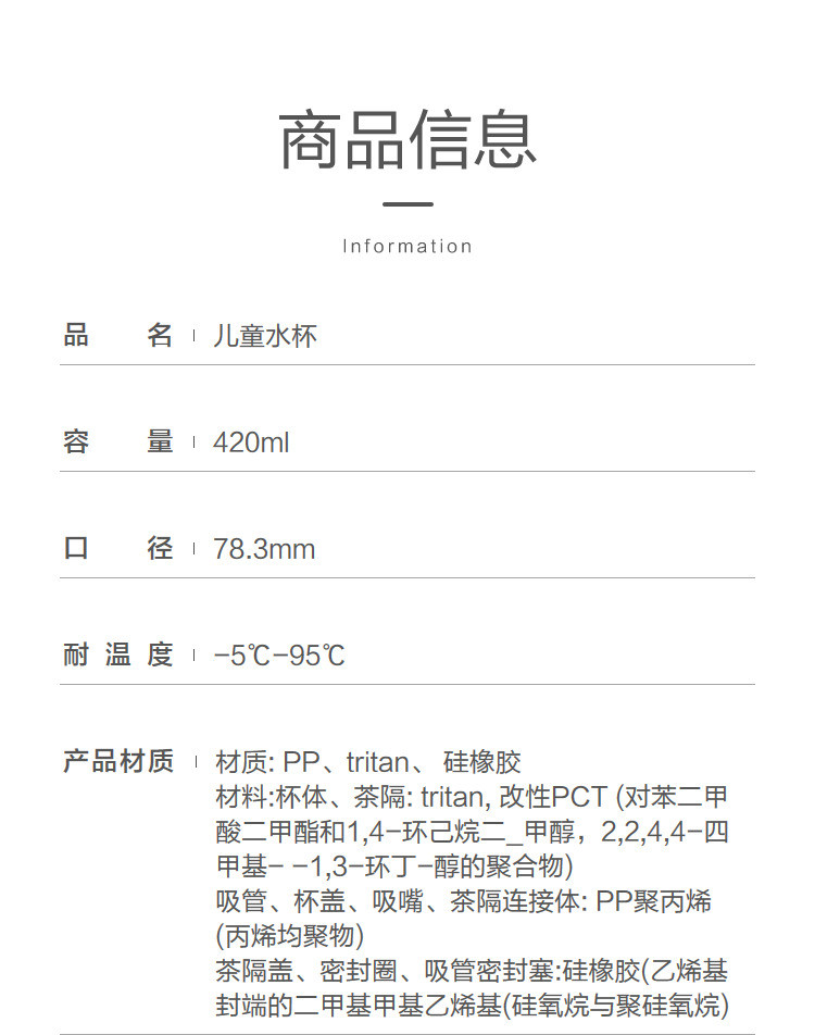 商品名称:儿童水杯男童女童吸管杯夏时尚户外便携饮水杯卡通茶水分离随行杯 458565