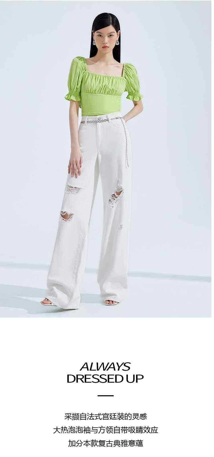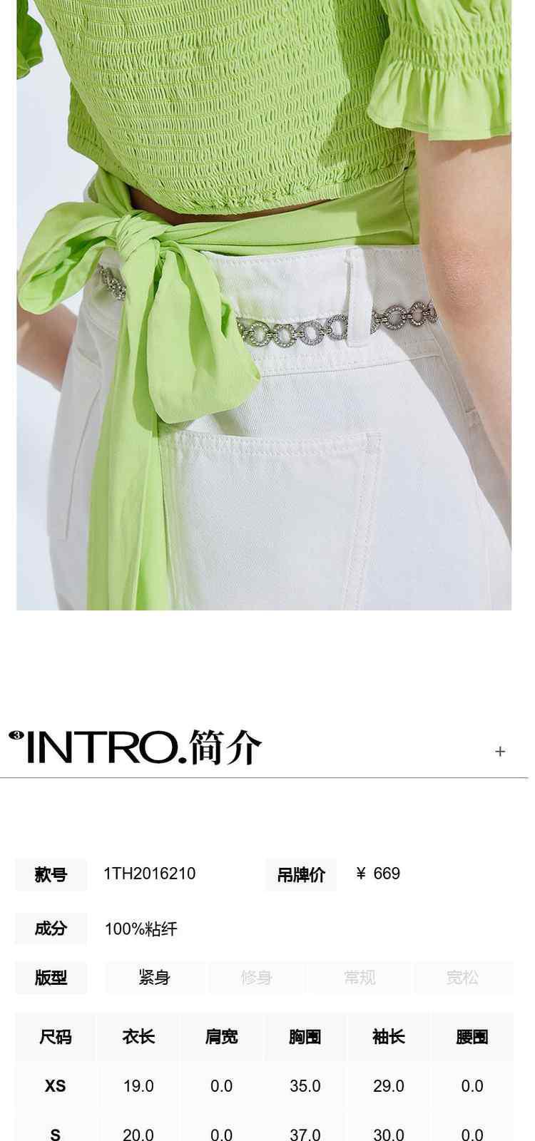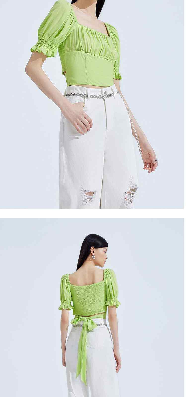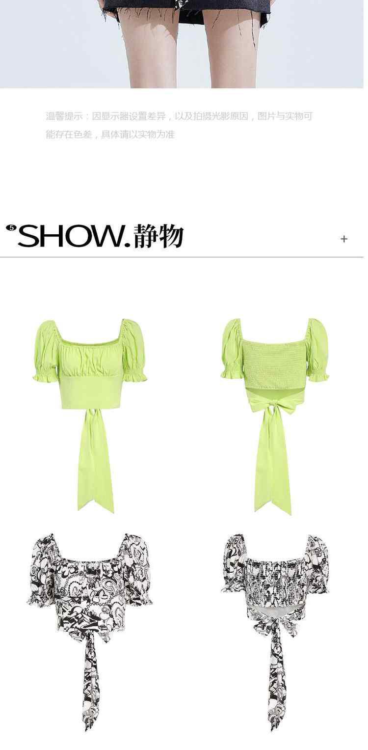 商品名称:黑标系列夏装 方领泡泡袖系带短款法式短袖衬衫女 446671