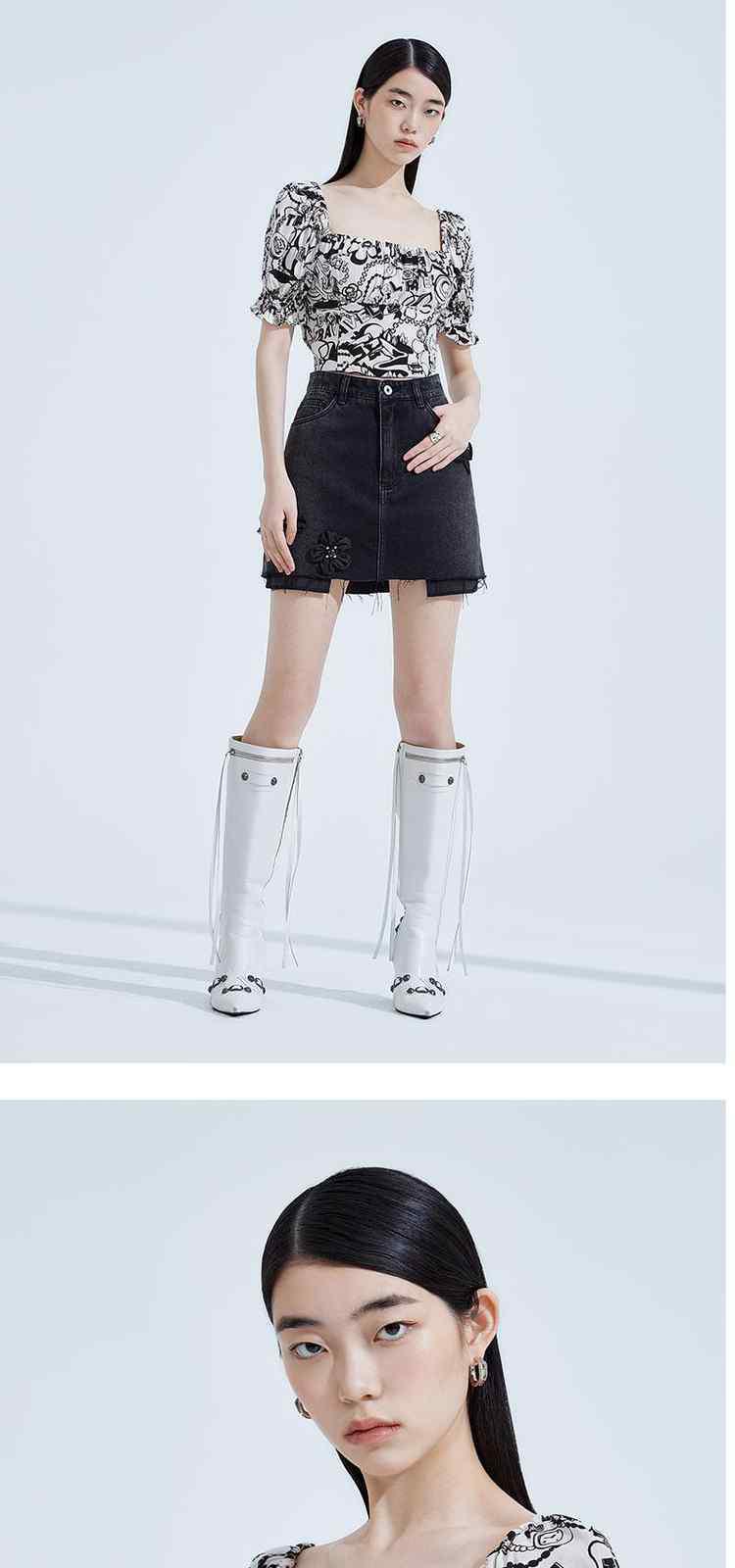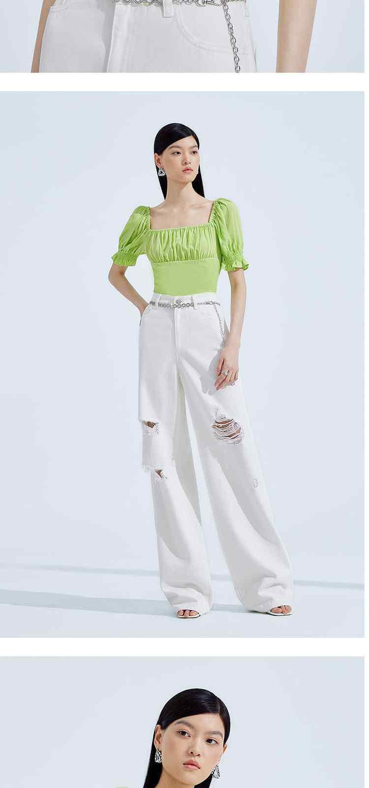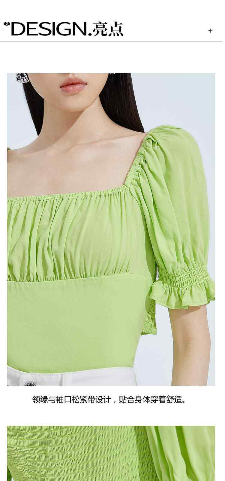 黑标系列夏装 方领泡泡袖系带短款法式短袖衬衫女 446671