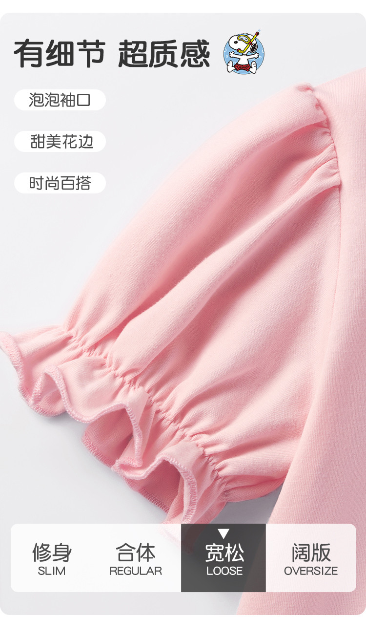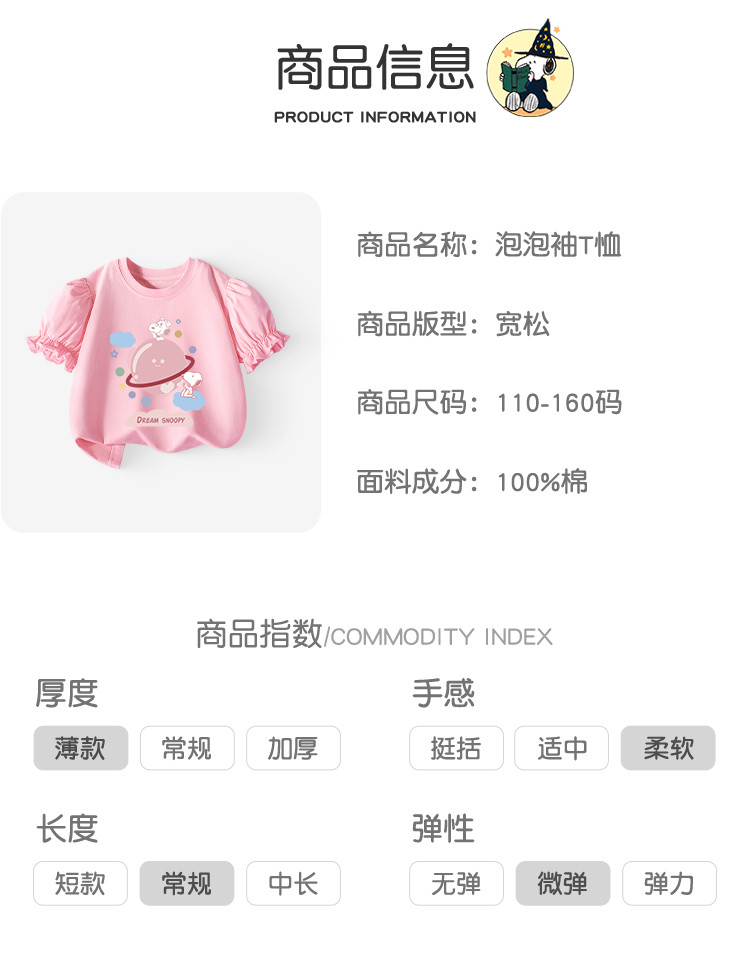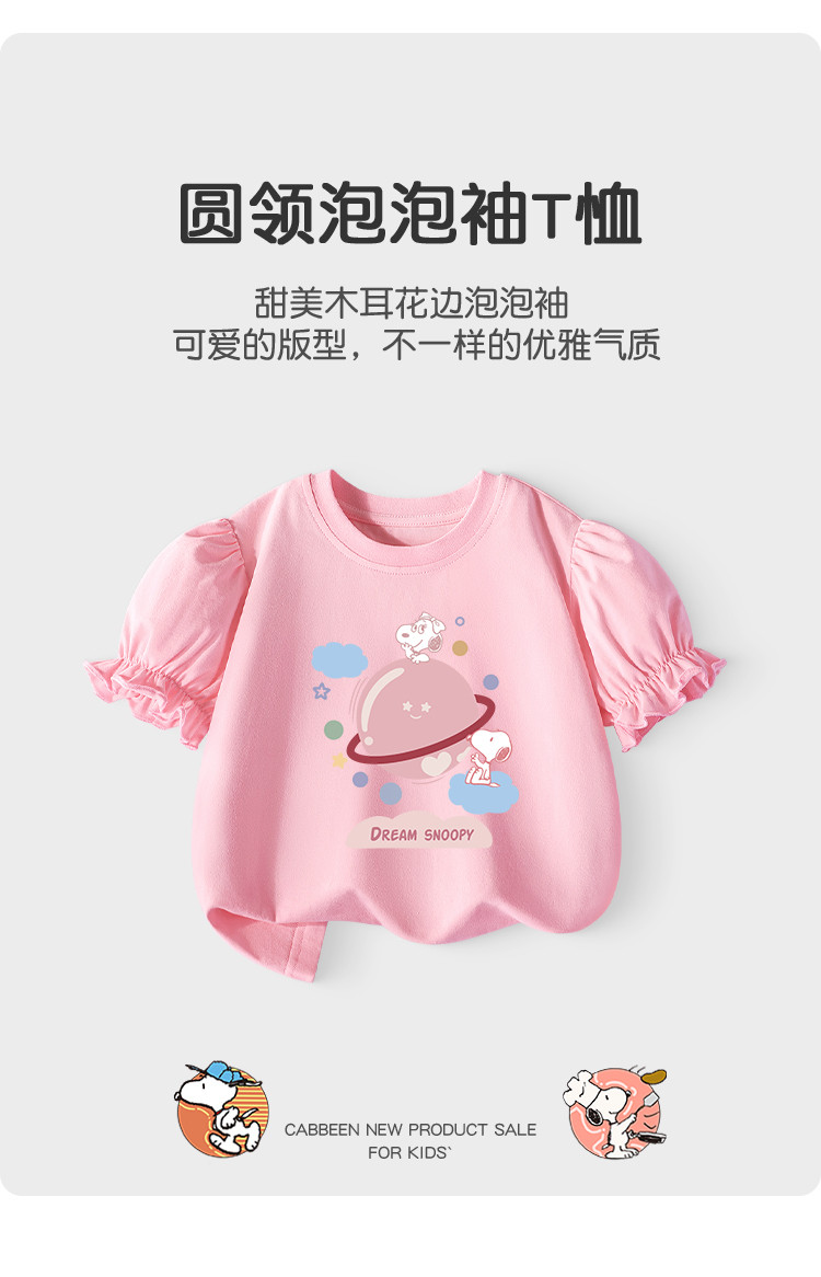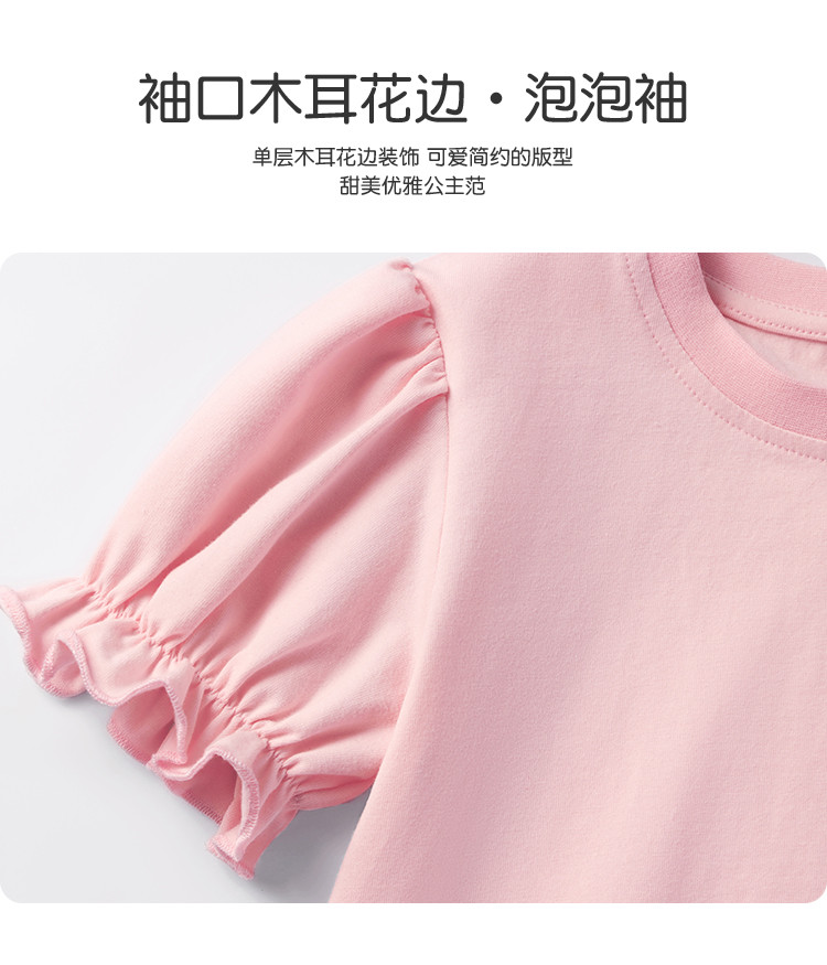 商品名称:童装女童圆领短袖上衣25夏新款简约时尚女孩甜美泡泡袖纯棉T恤 357599