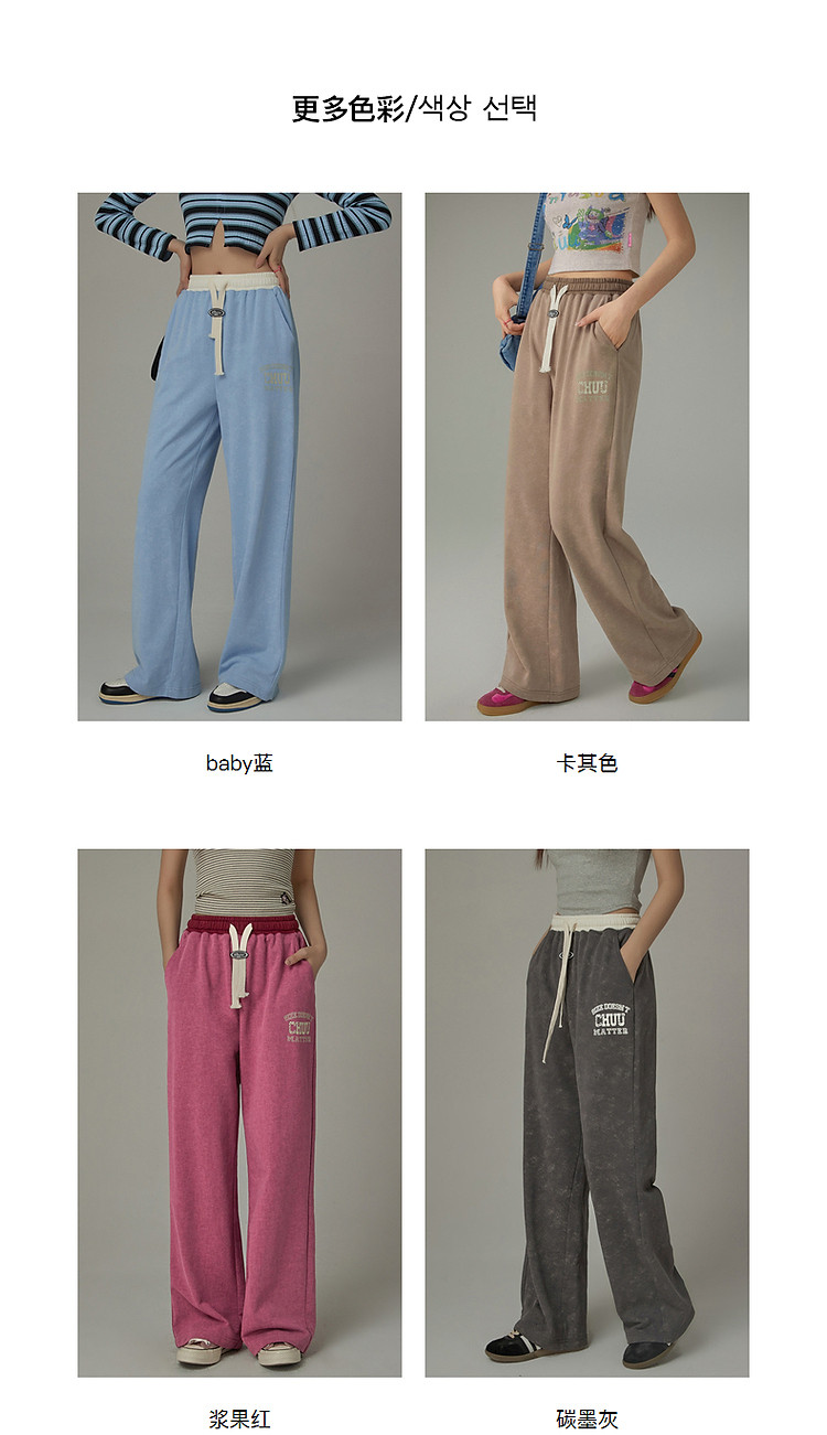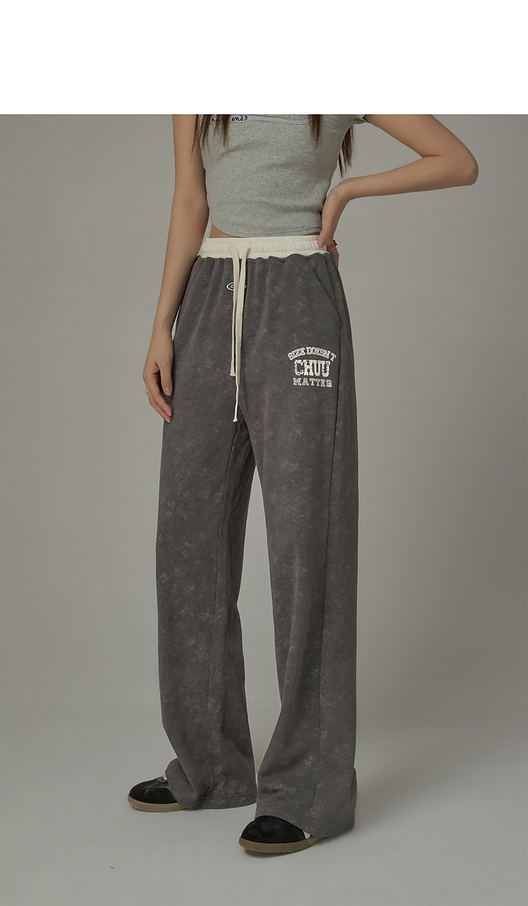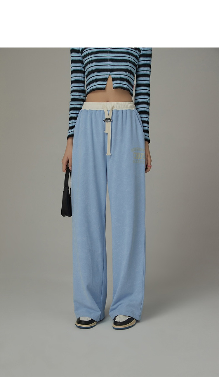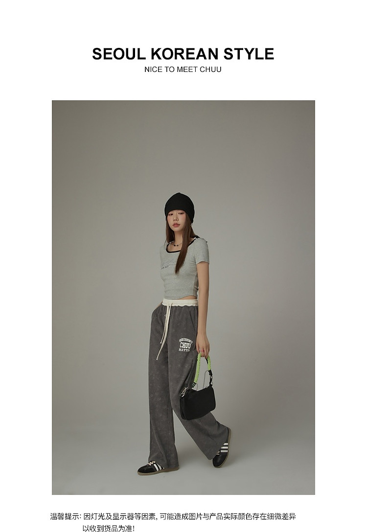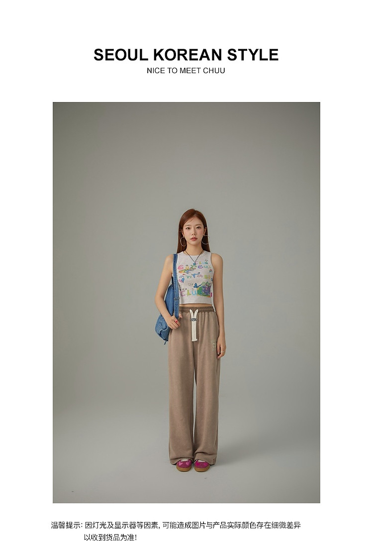 字母系带休闲裤女夏松紧腰宽松长裤阔腿裤子 461587