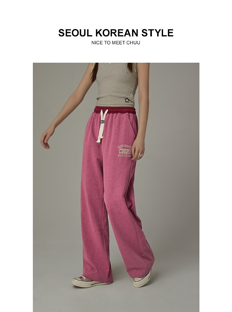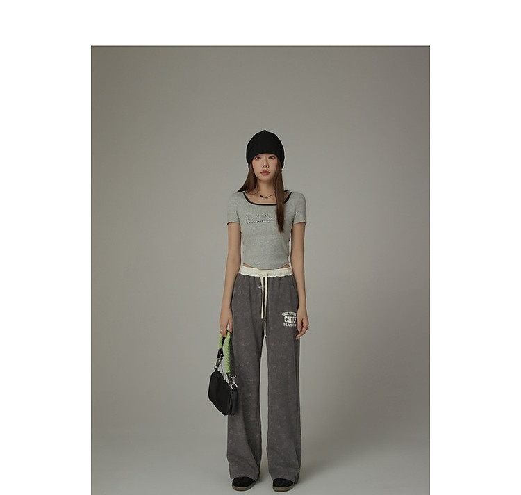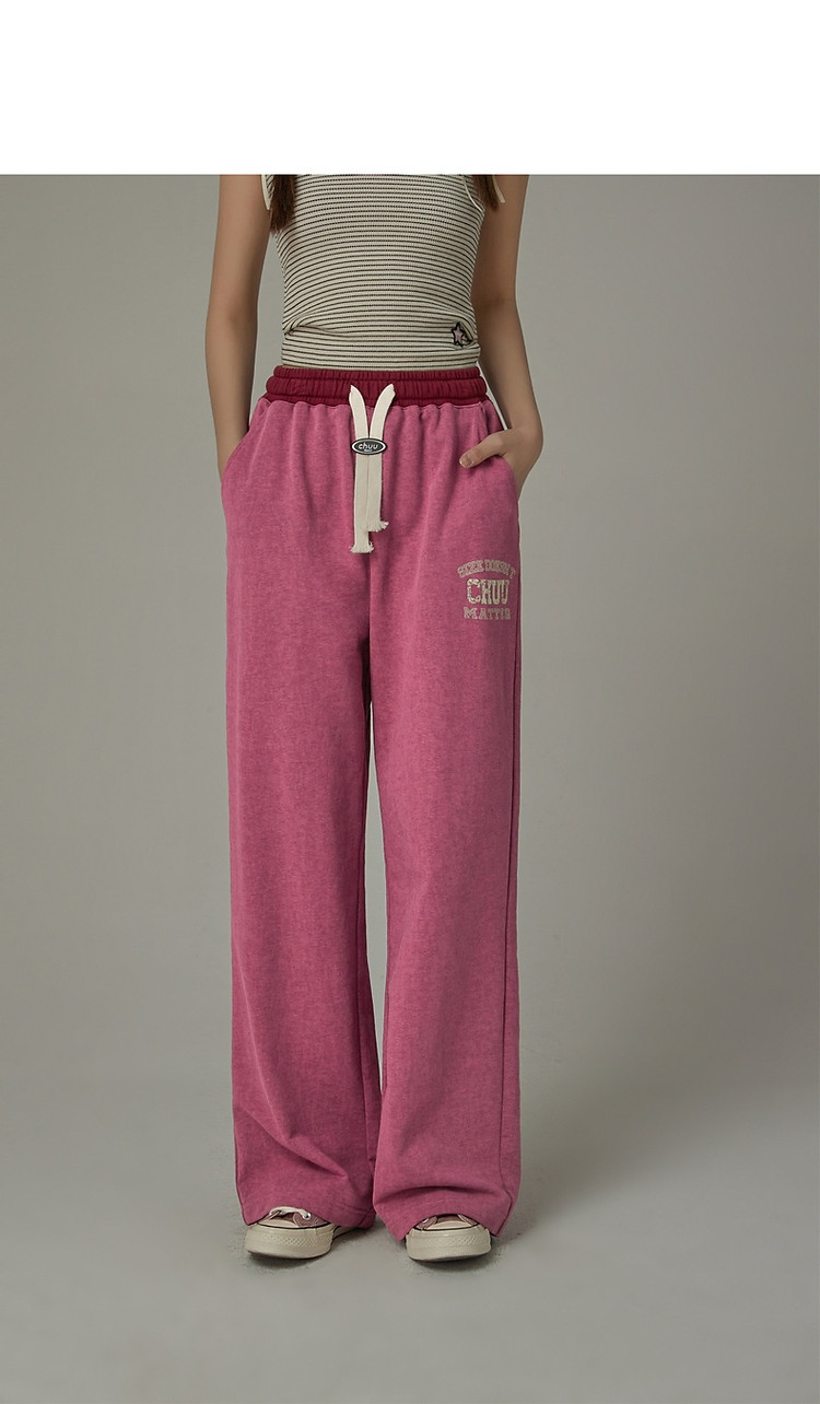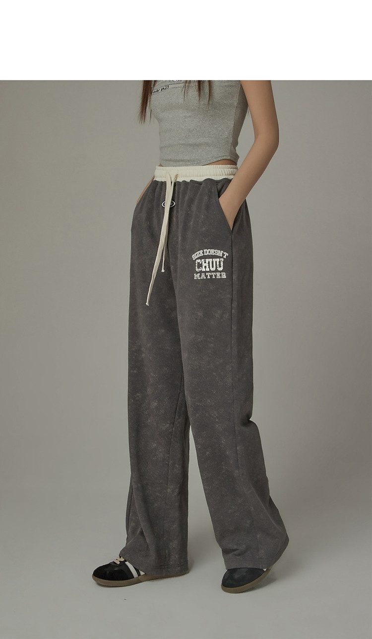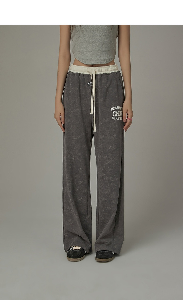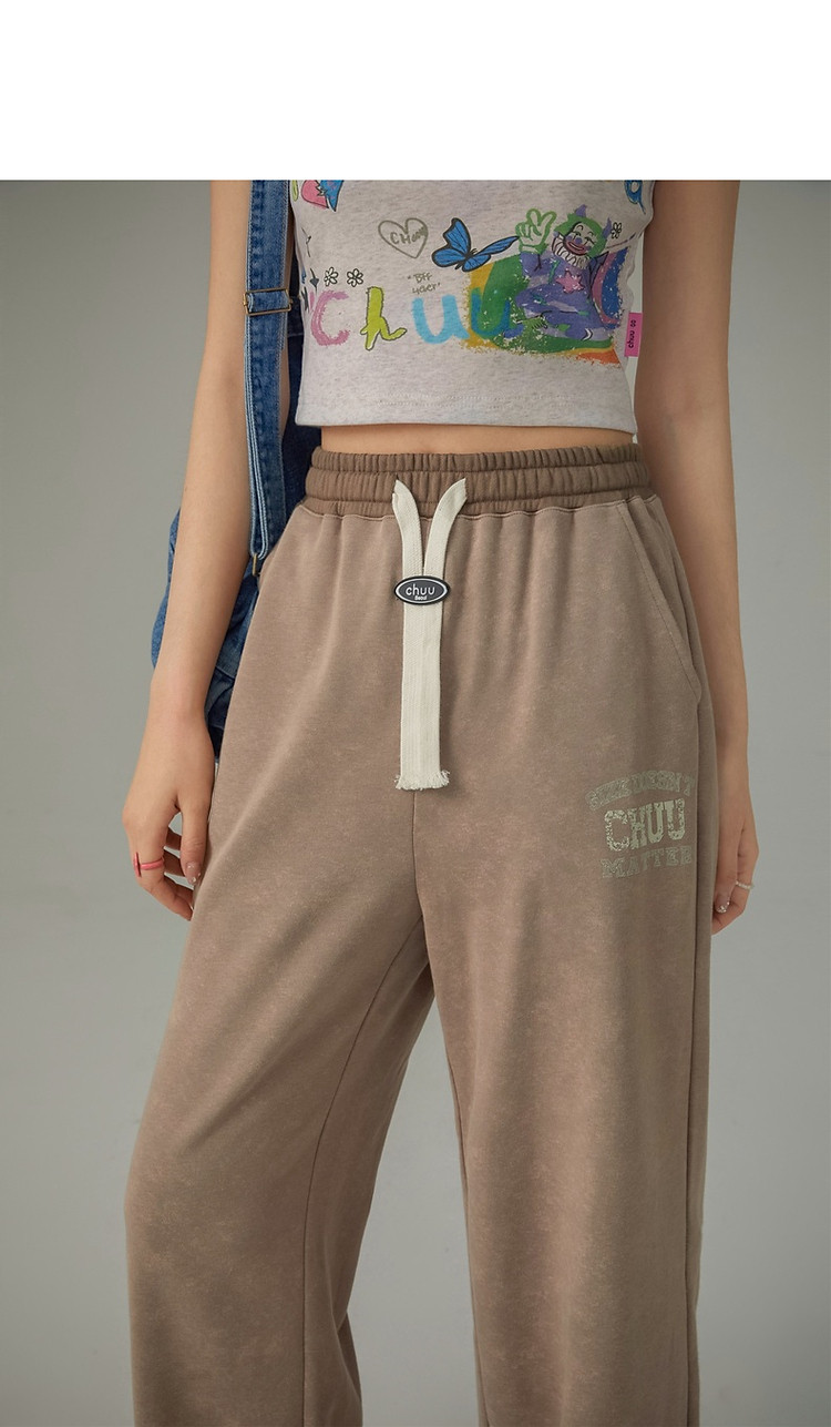 字母系带休闲裤女夏松紧腰宽松长裤阔腿裤子 461587