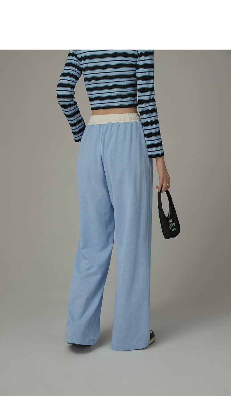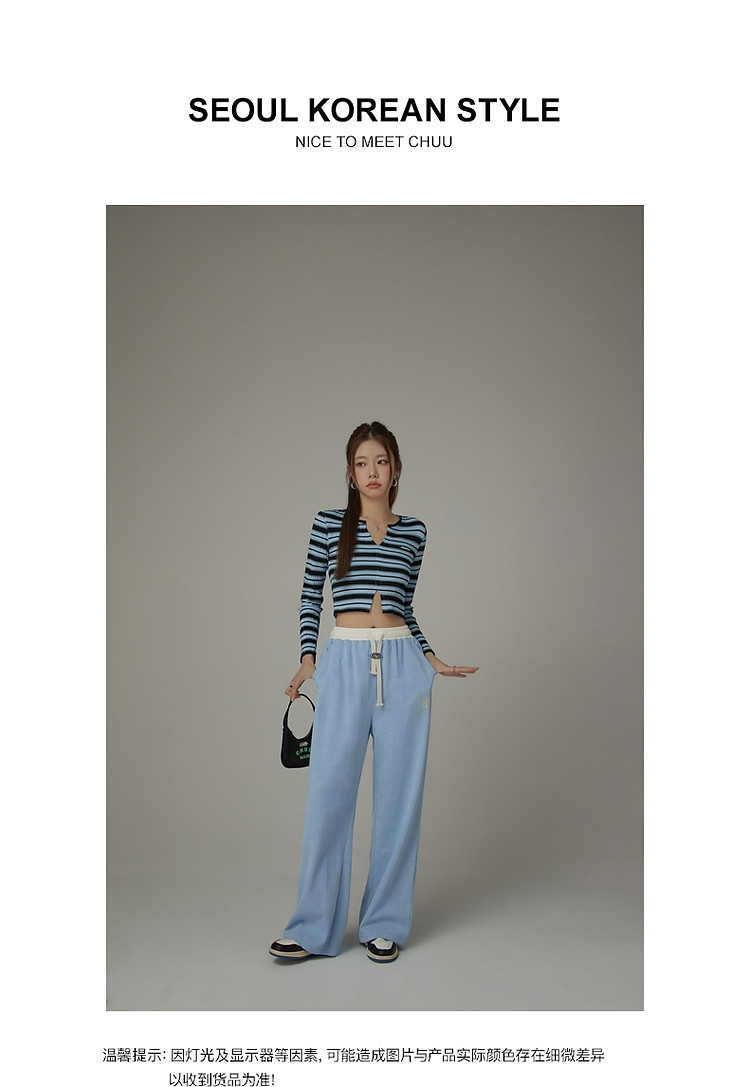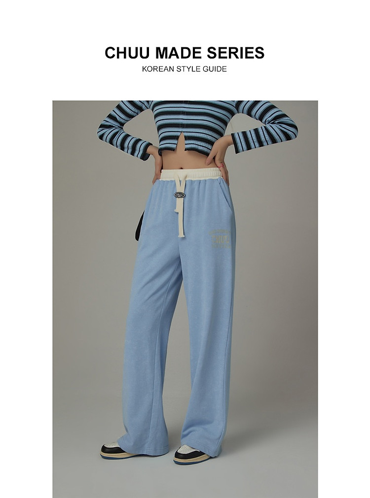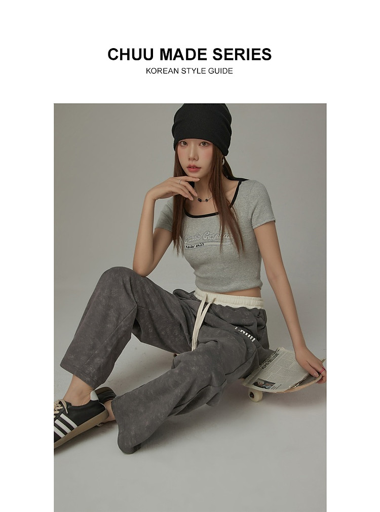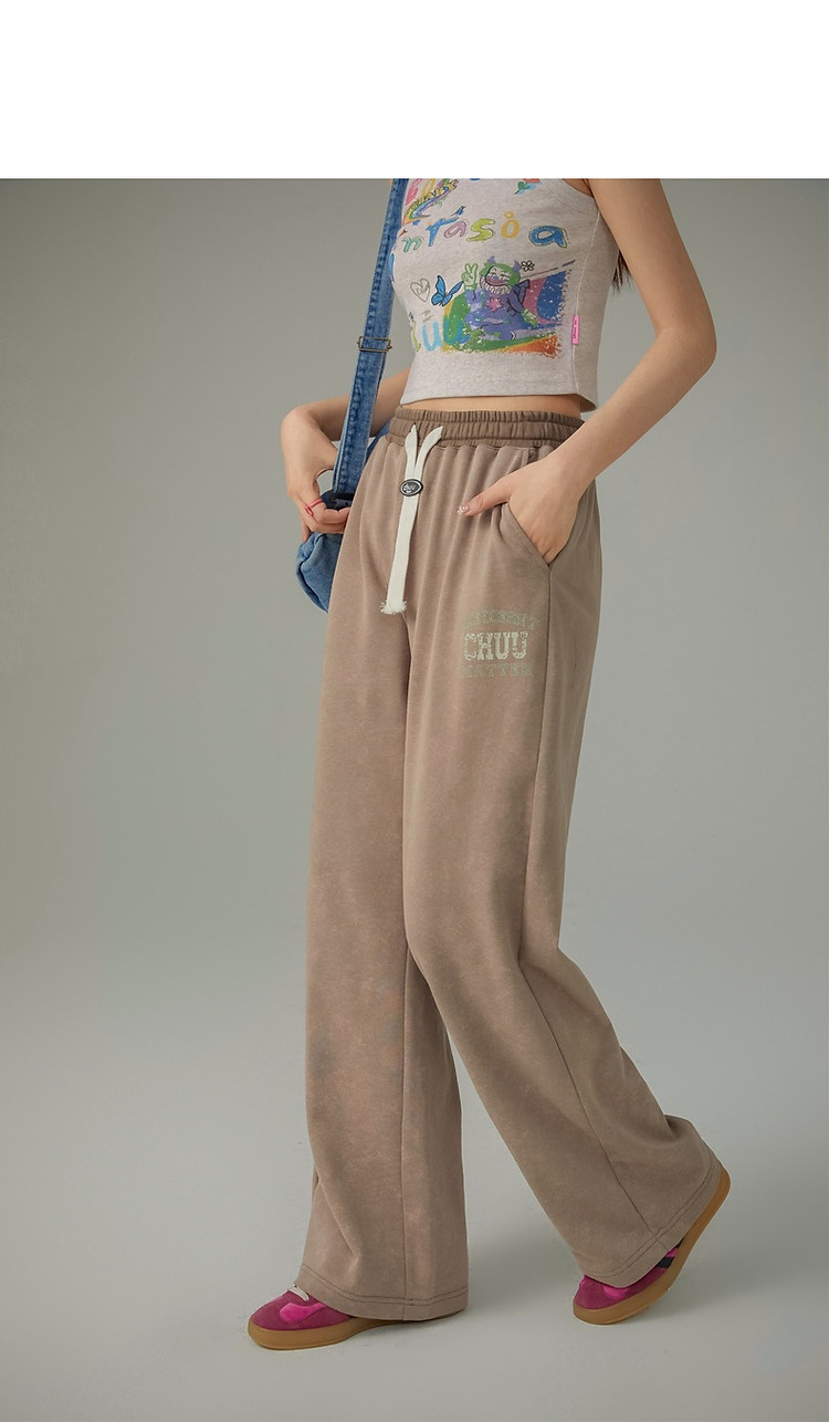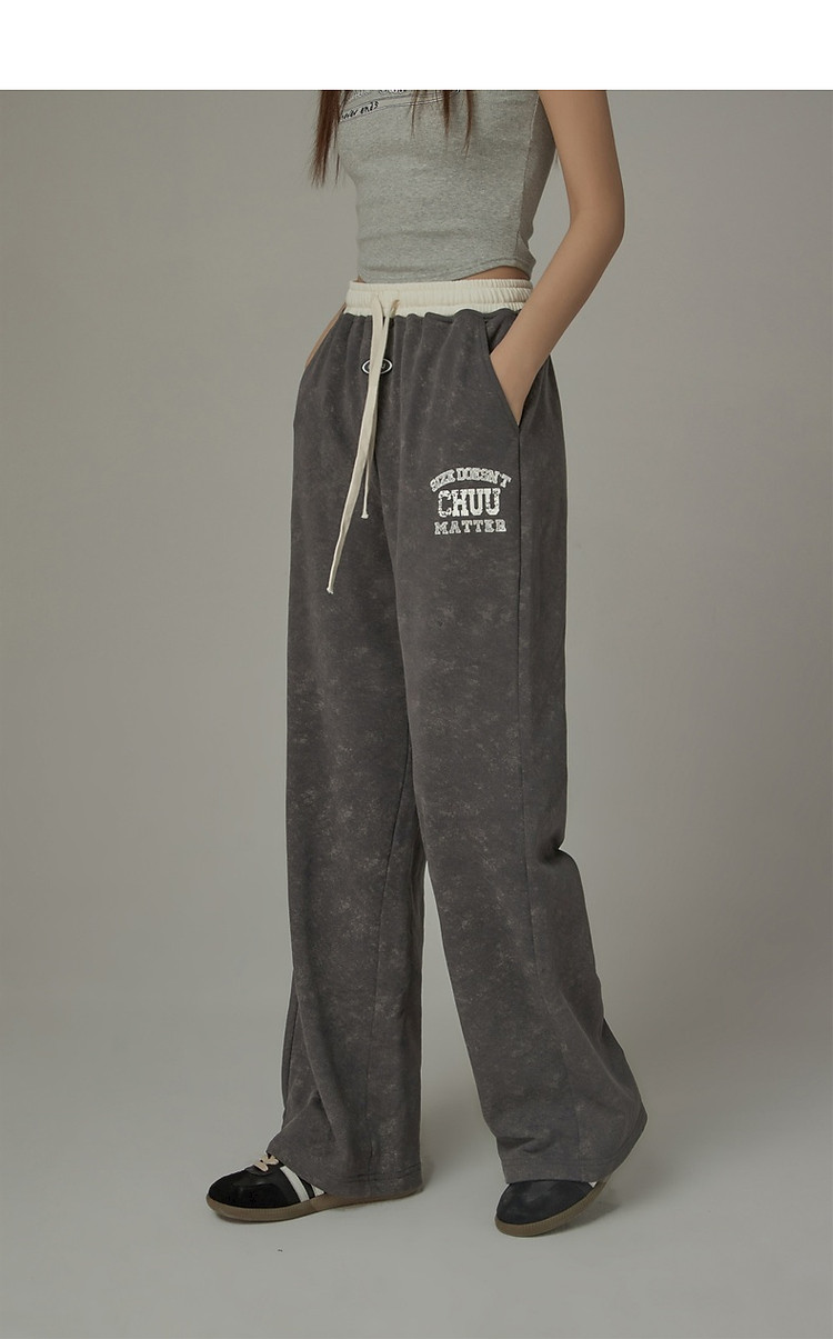 字母系带休闲裤女夏松紧腰宽松长裤阔腿裤子 461587