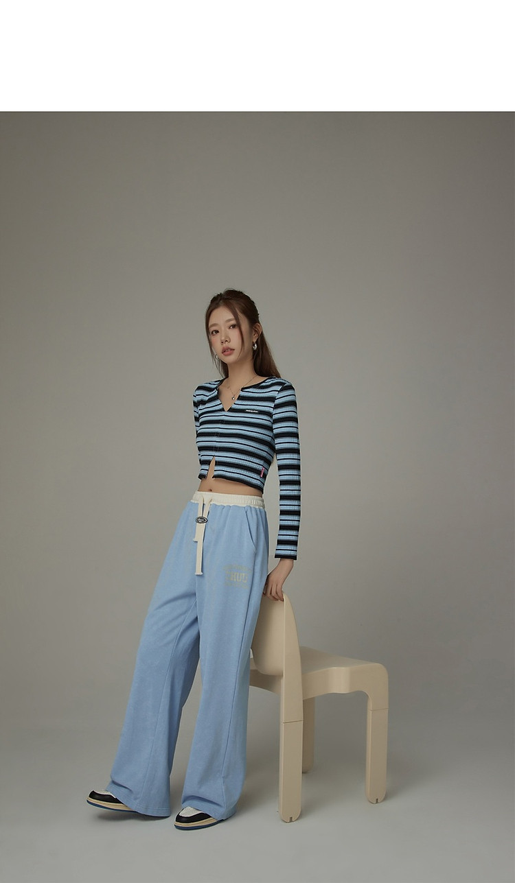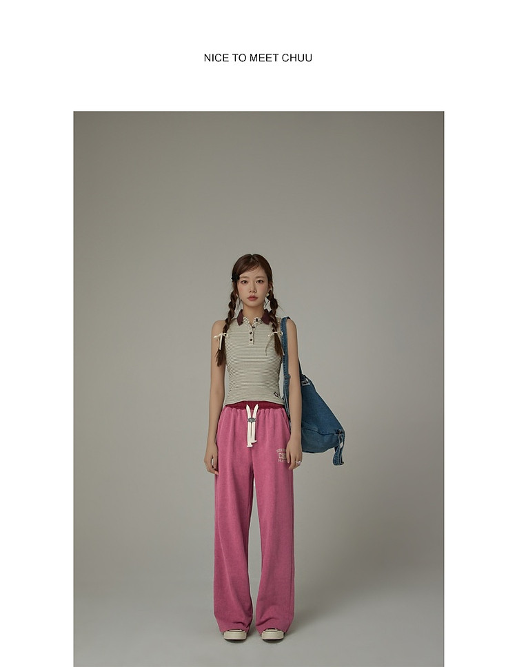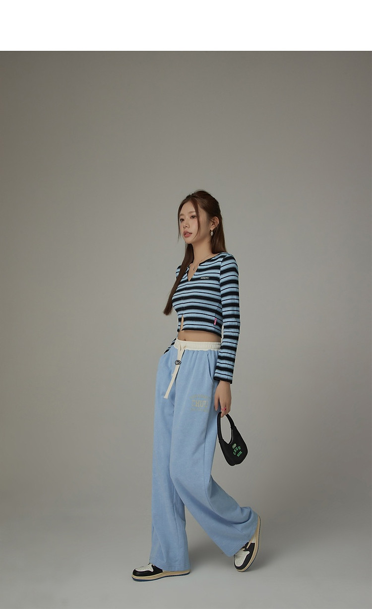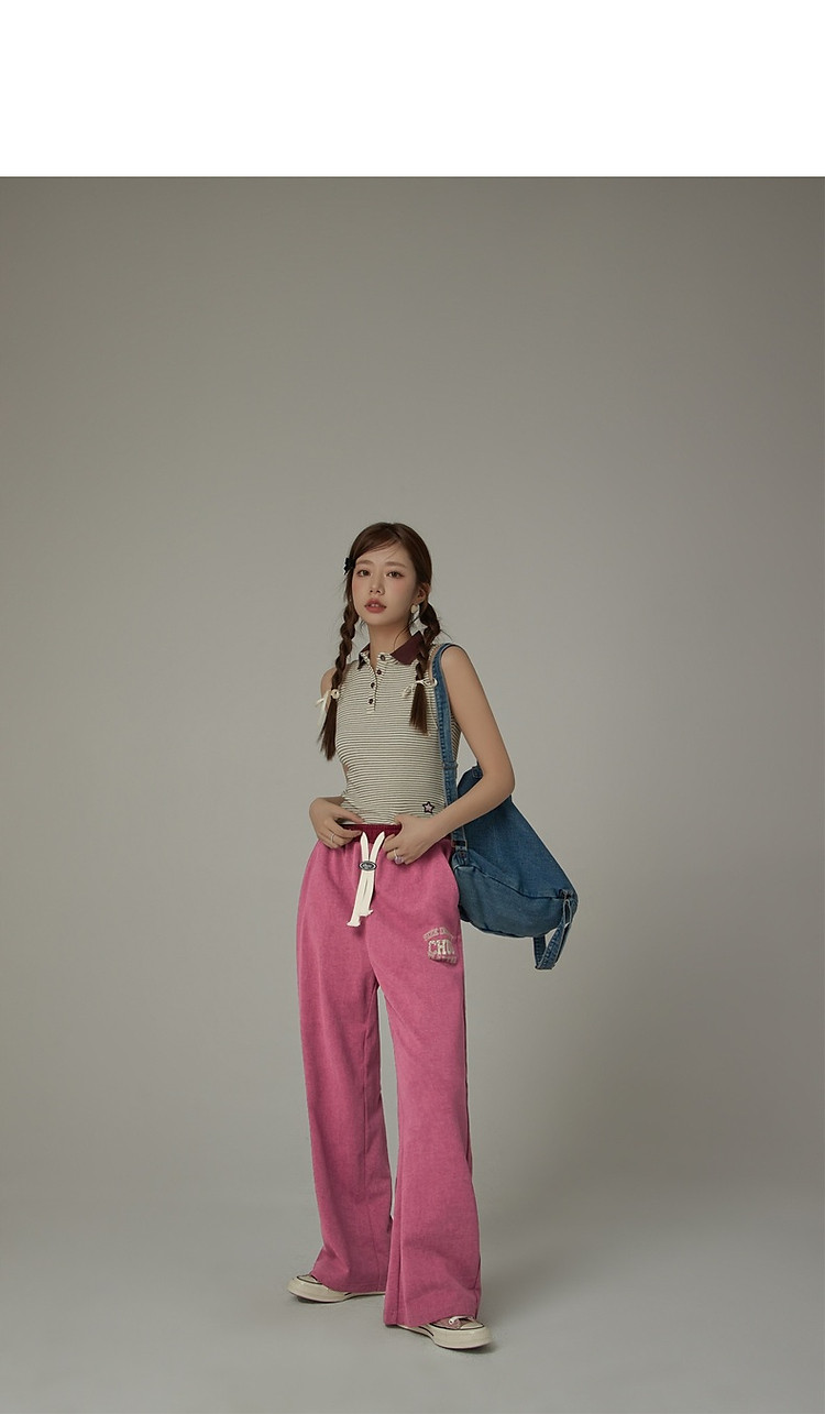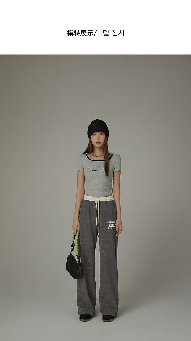 字母系带休闲裤女夏松紧腰宽松长裤阔腿裤子 461587