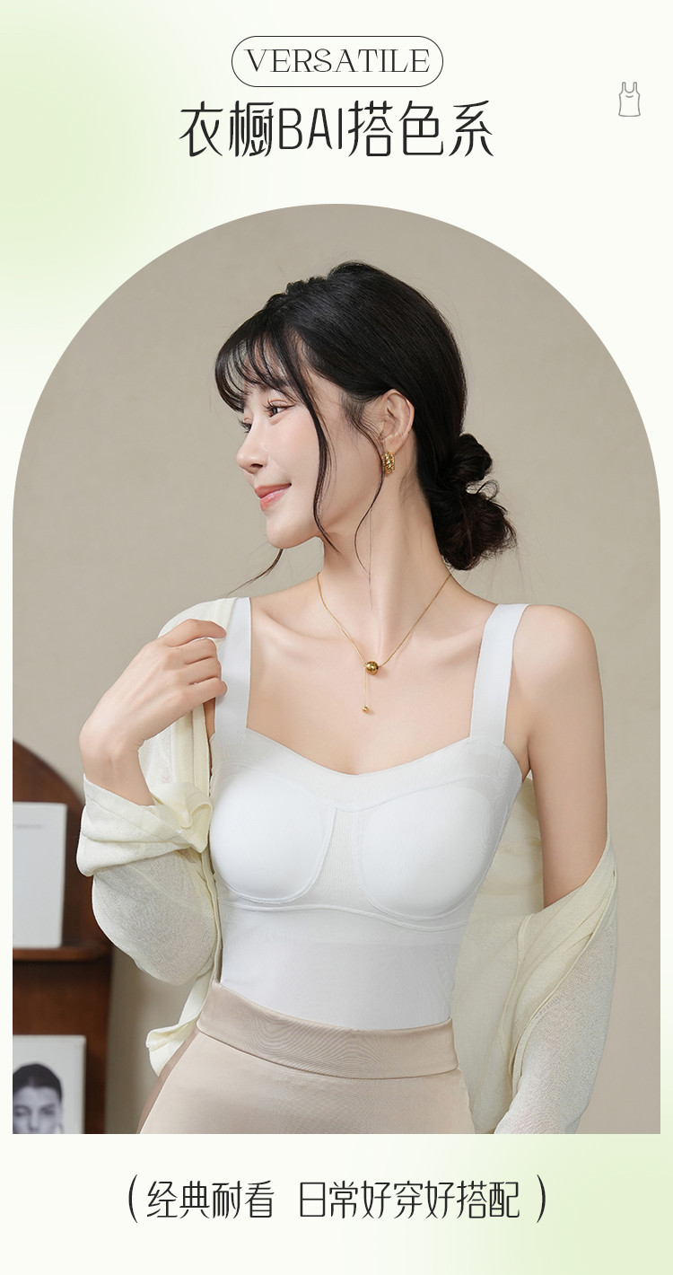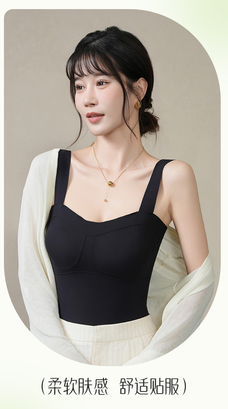 商品名称:【含桑蚕丝免穿文胸】冰丝吊带背心可外穿聚拢显瘦文胸吊带内衣女 246091