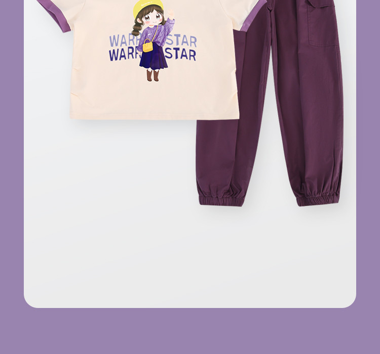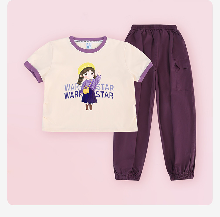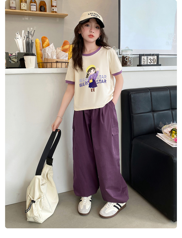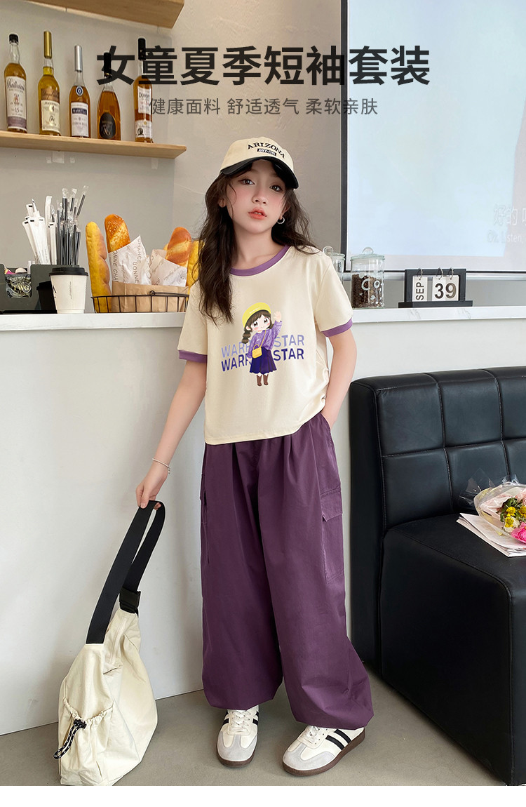 商品名称:童装女童休闲套装24夏季中大童时尚洋气卡通短袖长裤两件套 472211