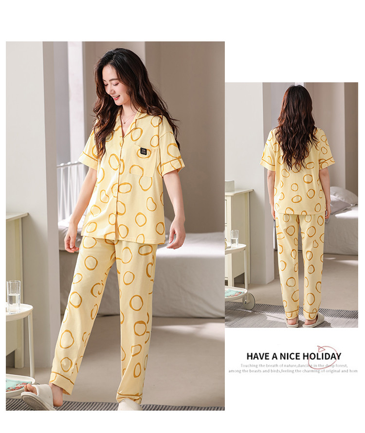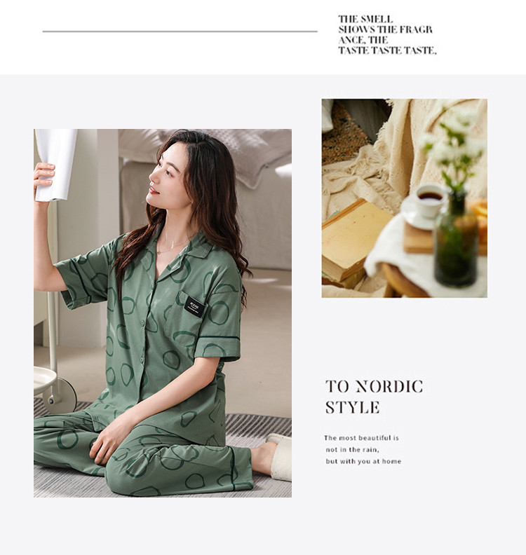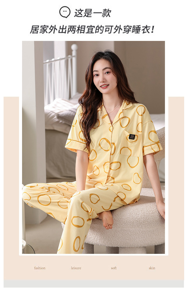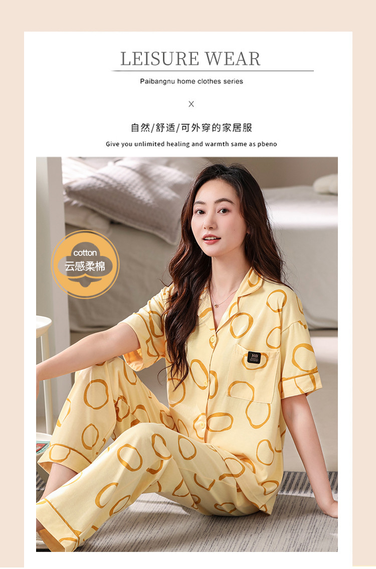 【棉感亲肤】春夏简约舒适居家短袖长裤可外穿女士睡衣家居服套装 156254